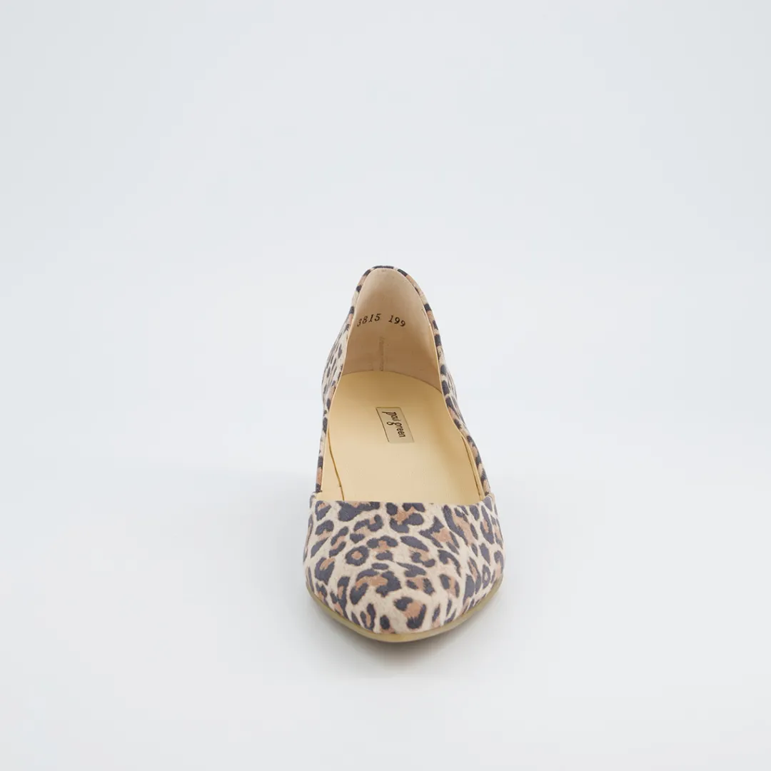 - Block heel, tapered model, in trendy leo-animal print, breathable