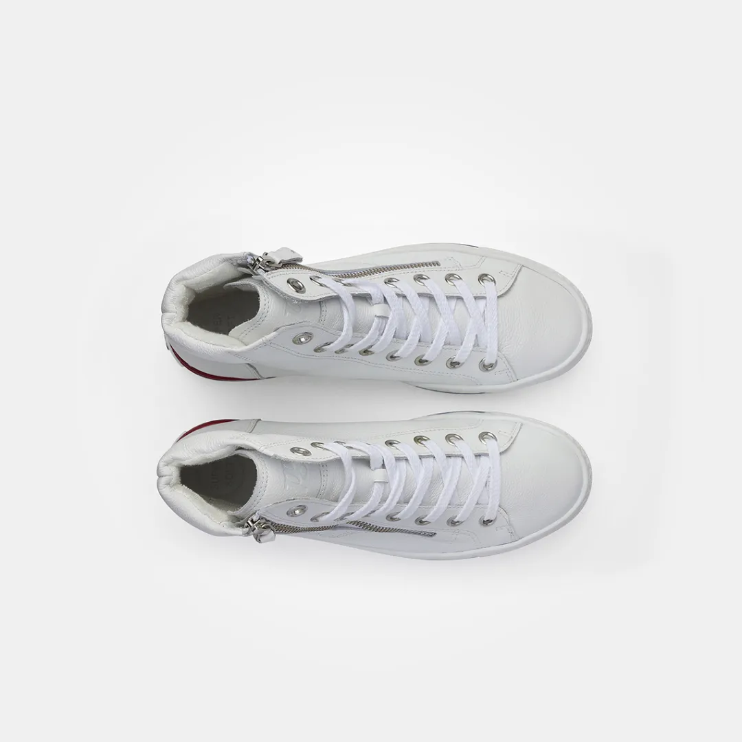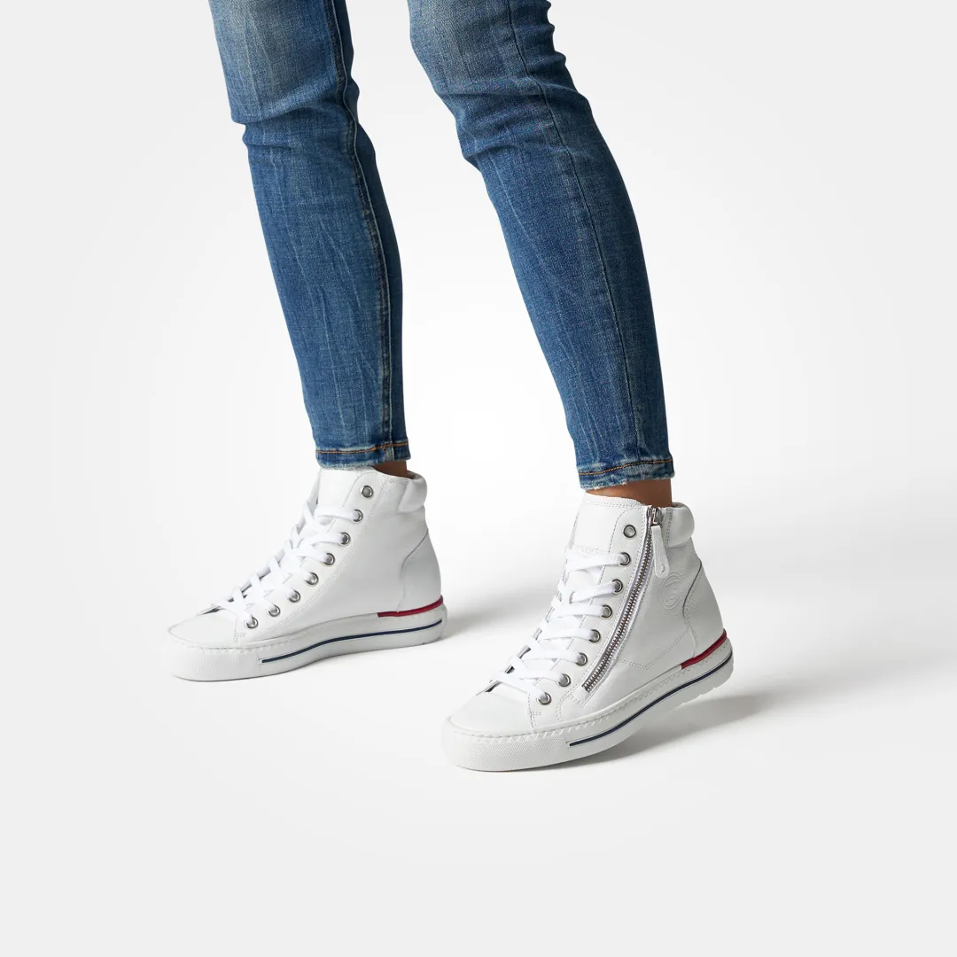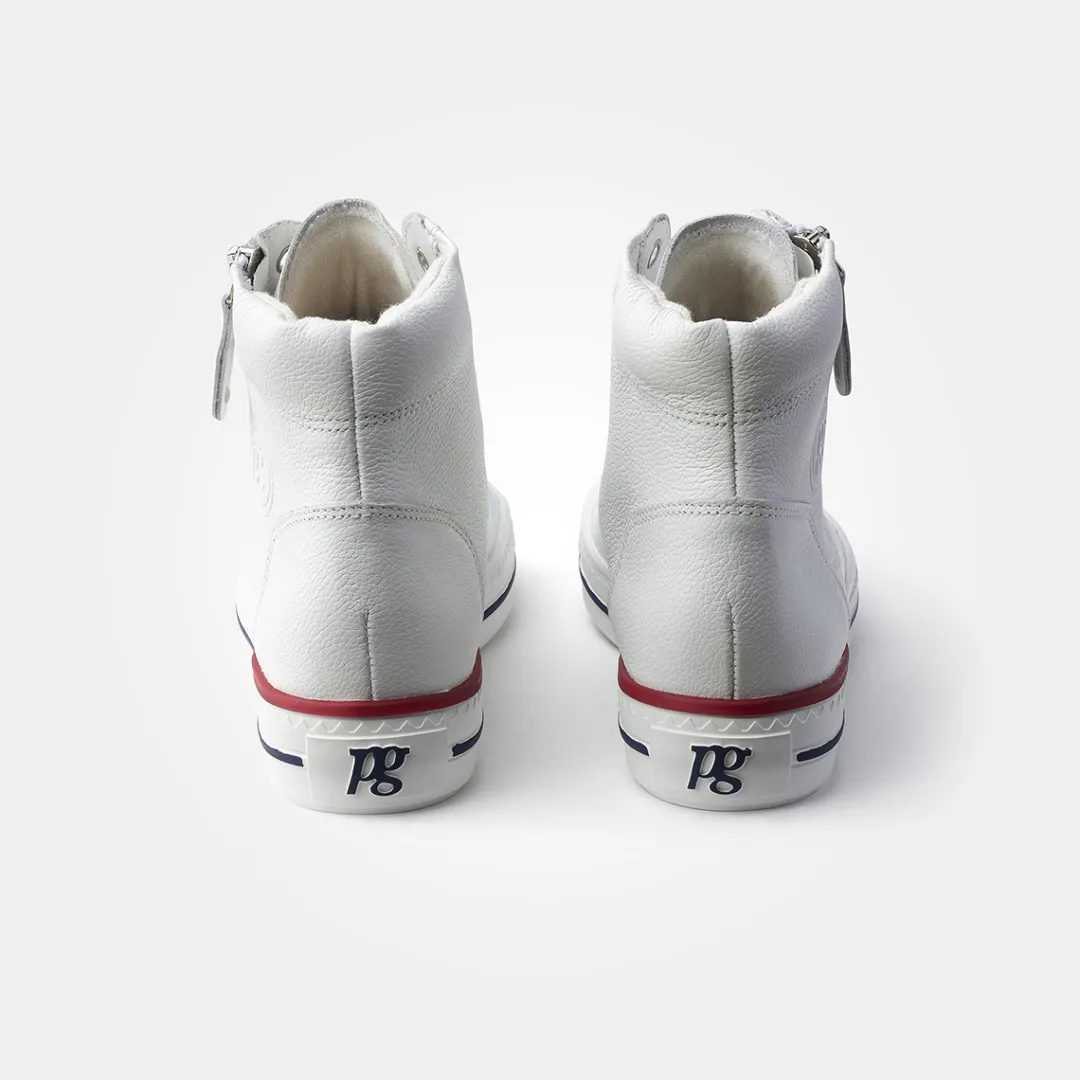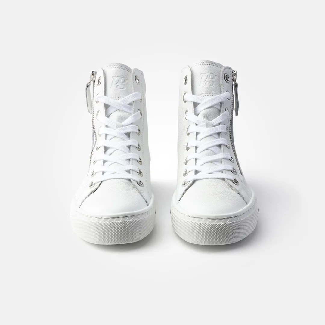 These SUPER SOFT hightop pairs from Paul Green leave nothing to be desired. The casual design made of white smooth leather sets beautiful accents with the chic zipper on the side. A good feeling with every step you owe to the super soft design and the inner lining made of leather with TENCELâ„¢ fibers. Plus, finishing touches like brass eyelets round out the cool overall look. Prove individuality with these sneakers! Each Paul Green shoe is handmade in up to 160 steps and then tested. This ensures that it meets the high requirements for fit and quality.