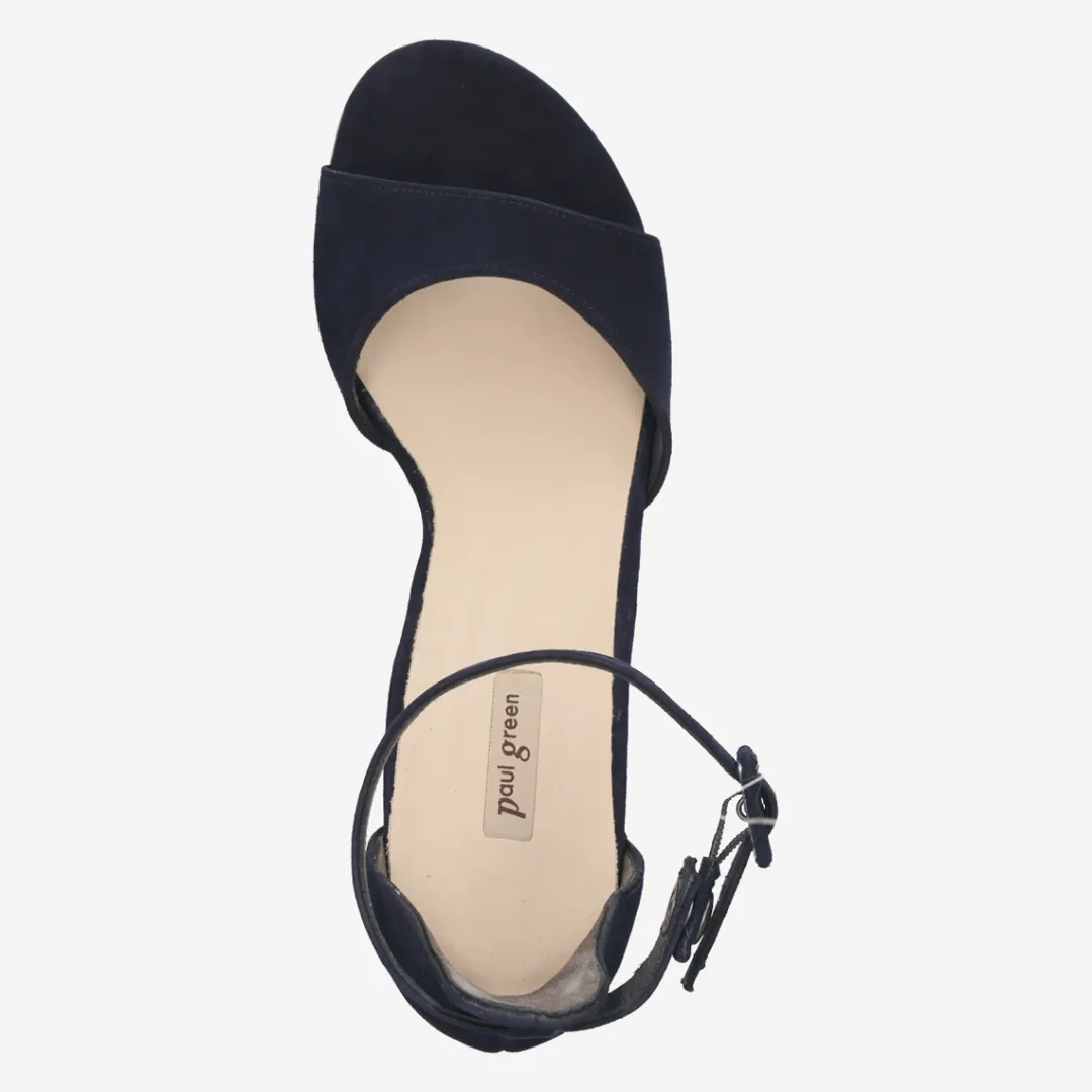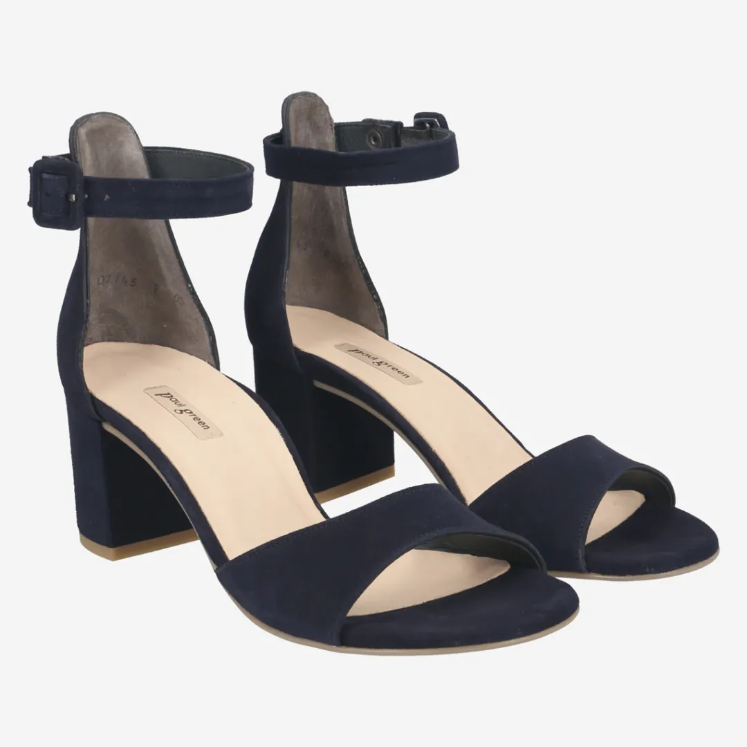Show style with these elegant sandals made of blue velvet leather. The clean design is stylishly interrupted by the beautiful block heel, creating an extravagant silhouette. The delicate ankle strap with adjustable buckle ensures perfect comfort and convinces thanks to the snap button for quick on and off. With this comfortable pair you set a cool accent in your outfits.