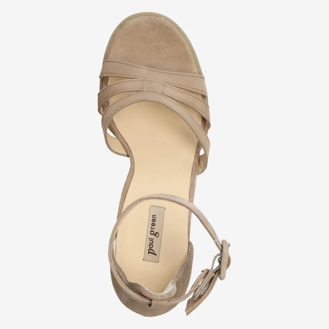 These platform sandals from Paul Green present themselves with an excellent design. The high-quality processing of beige velvet leather convinces with the straps at the front for refined style. The beautiful ankle strap with noble push-button clasp can be easily opened and closed, thus a comfortable fit on the foot is guaranteed. The platform sole with a beautiful block heel ensures a comfortable appearance. Show style! Paul Green makes shoes with great passion and mastery, which is expressed in perfection, quality, style and fit. The result: a unique, uplifting wearing experience! The Paul Green effect.