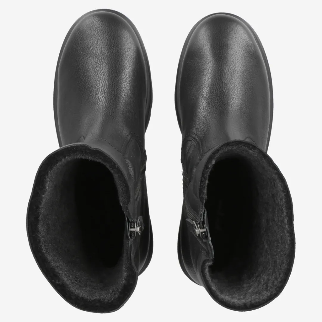 A good reason to leave the house despite cold temperatures, offer these black leather ankle boots from Paul Green. The comfortable pair with lambskin lining keeps feet warm. An interior zipper makes it easy to get on. The striking tread sole rounds off the overall look perfectly. Treat yourself to real winter favorites! Paul Green makes shoes with great passion and mastery, expressed in perfection, quality, style and fit. The result: a unique, uplifting wearing experience! The Paul Green effect.