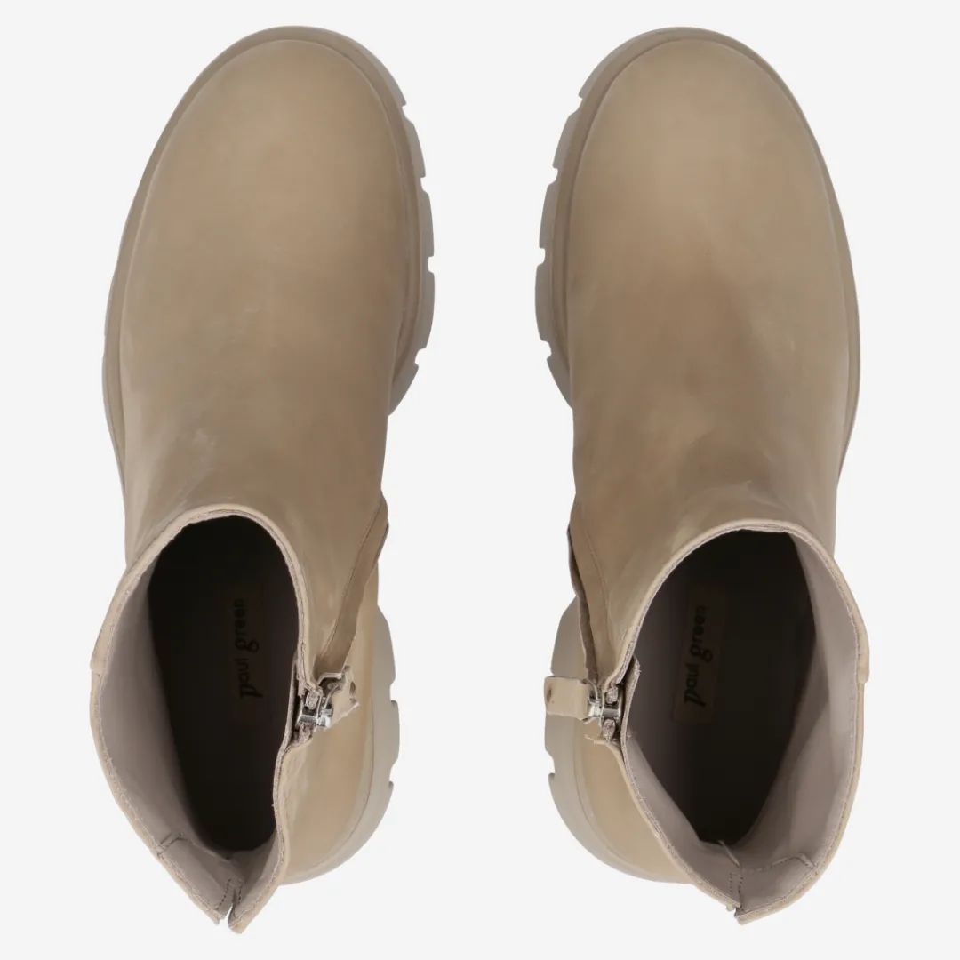 These hip booties by Paul Green impress with their clean details. The pair is made from beige nubuck leather and features a zipper on the inside. The thick, profiled outsole is not only visually appealing, but also offers excellent wearing qualities. Let yourself be inspired by this fashionable model! Paul Green makes shoes with great passion and mastery, which is expressed in perfection, quality, style and fit. The result: a unique, uplifting feel! The Paul Green effect.