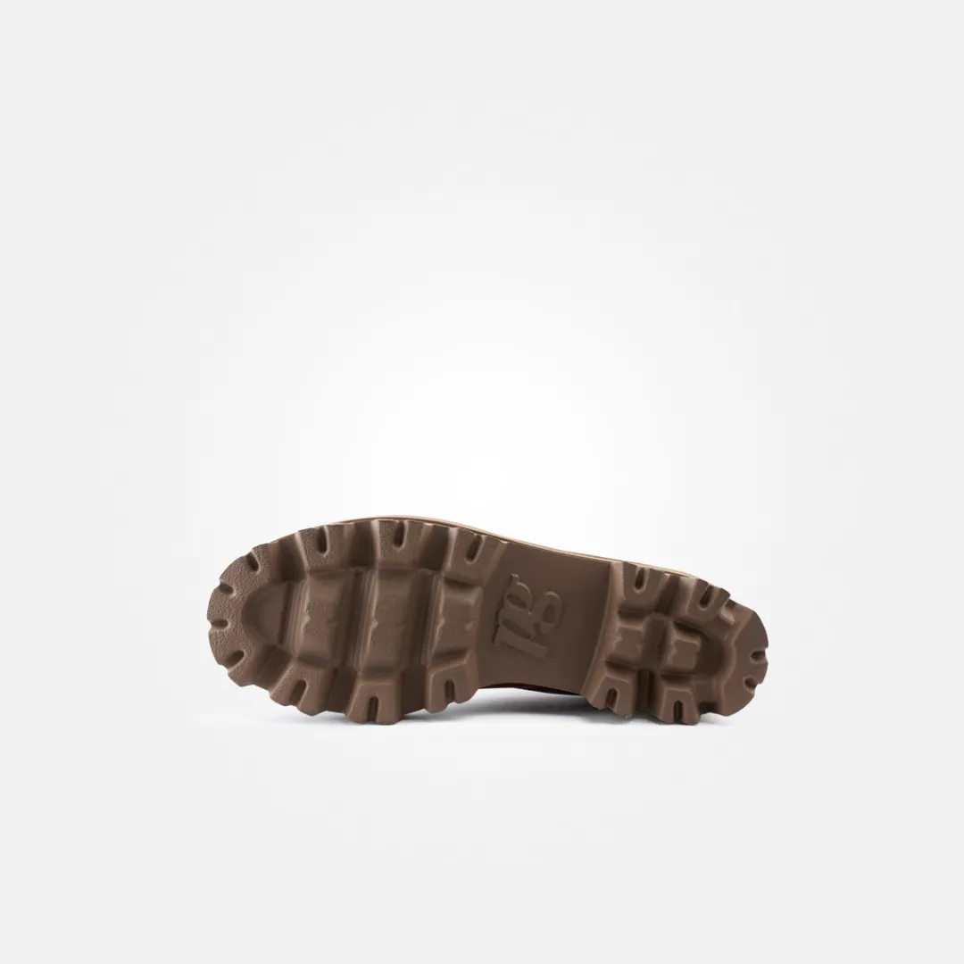 - Made in Europe, PFI Eco-Label LWG – Leather Working Group certified, block heel, platform sole, strap, leather application, zipper, laces in wool look