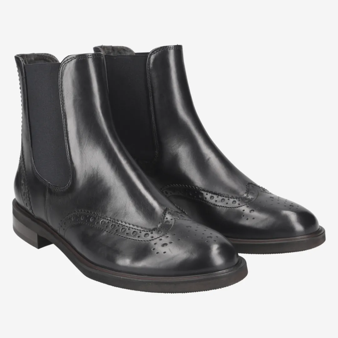 Start the day fashionably with these Chelsea ankle boots from Paul Green! The boots with elastic inserts on the sides can be combined in many ways thanks to the classic color scheme of blue smooth leather. The perforated details provide a particularly attractive look. The casual model convinces with a flexible outsole. A shoe you can rely on – no matter what you are planning! Paul Green shoes have a DNA of elegance and sportiness. This DNA is in every single shoe and in the entire range.