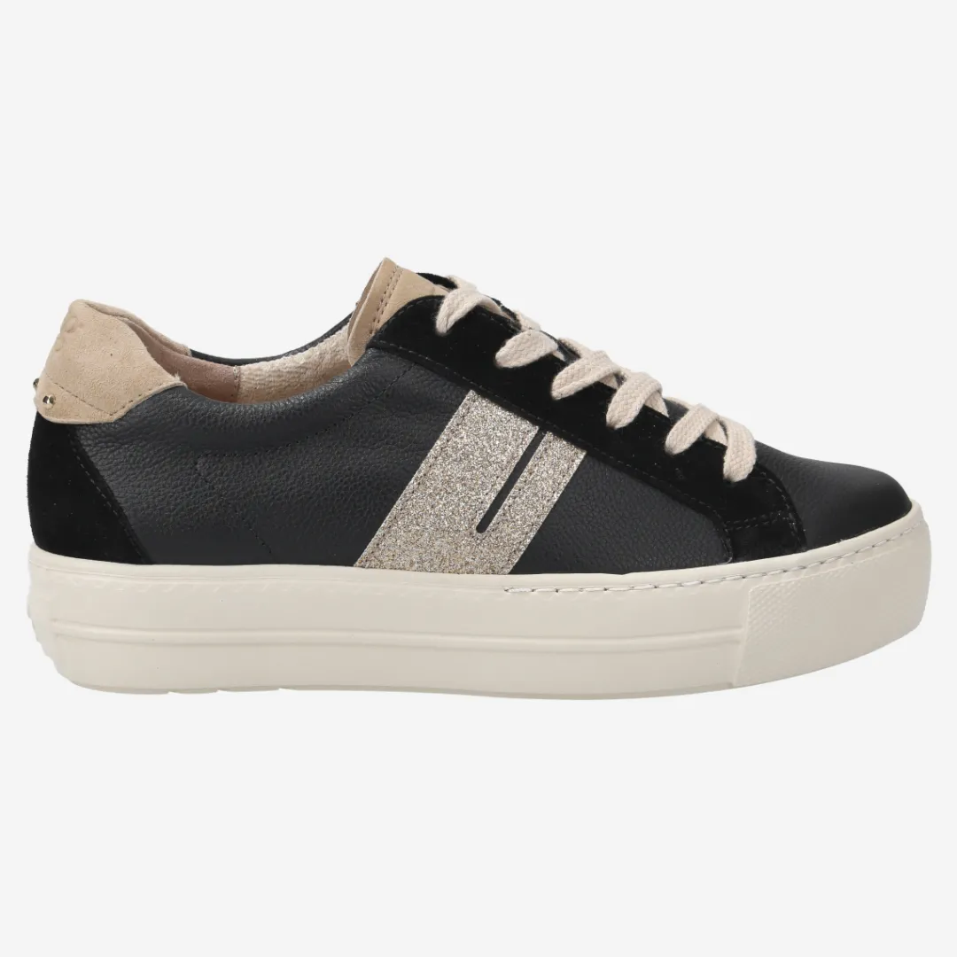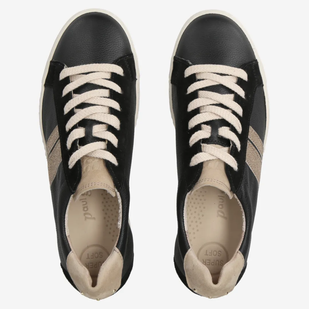 These SUPER SOFT Pauls by Paul Green reflect the trend in an impressive way. The model impresses with soft smooth leather in black and gold glitter elements on the side. The studded trim on the heel adds a little wow effect. With the trendy outsole, you’ll be totally on trend with this pair. Super soft shoes make life more comfortable – feel it for yourself! Paul Green stands for women’s shoes of the highest quality, made with craftsmanship and passion. Each of our shoes is made by qualified master shoemakers in up to 160 steps. The result is quality that you can see and feel.