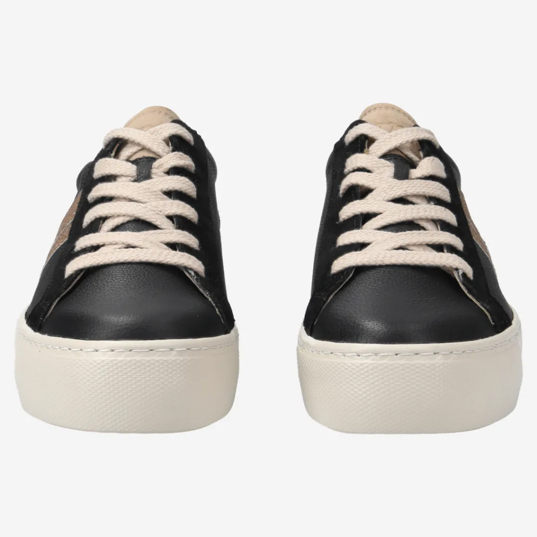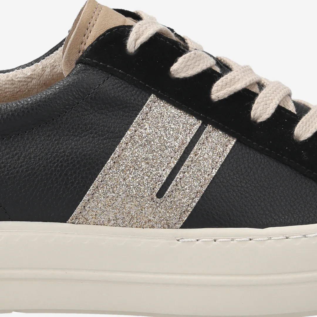 - Platform sole, logo embossing, rivet applications in the heel area, side glitter application as an eye-catcher, breathable, SuperSoft, supple leather, soft heel cap, light and flexible outsole, soft footbed