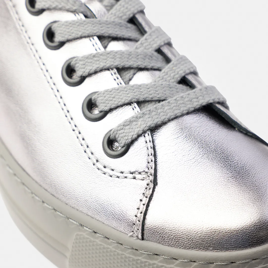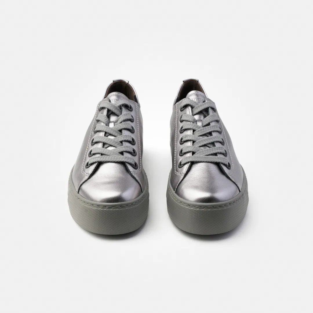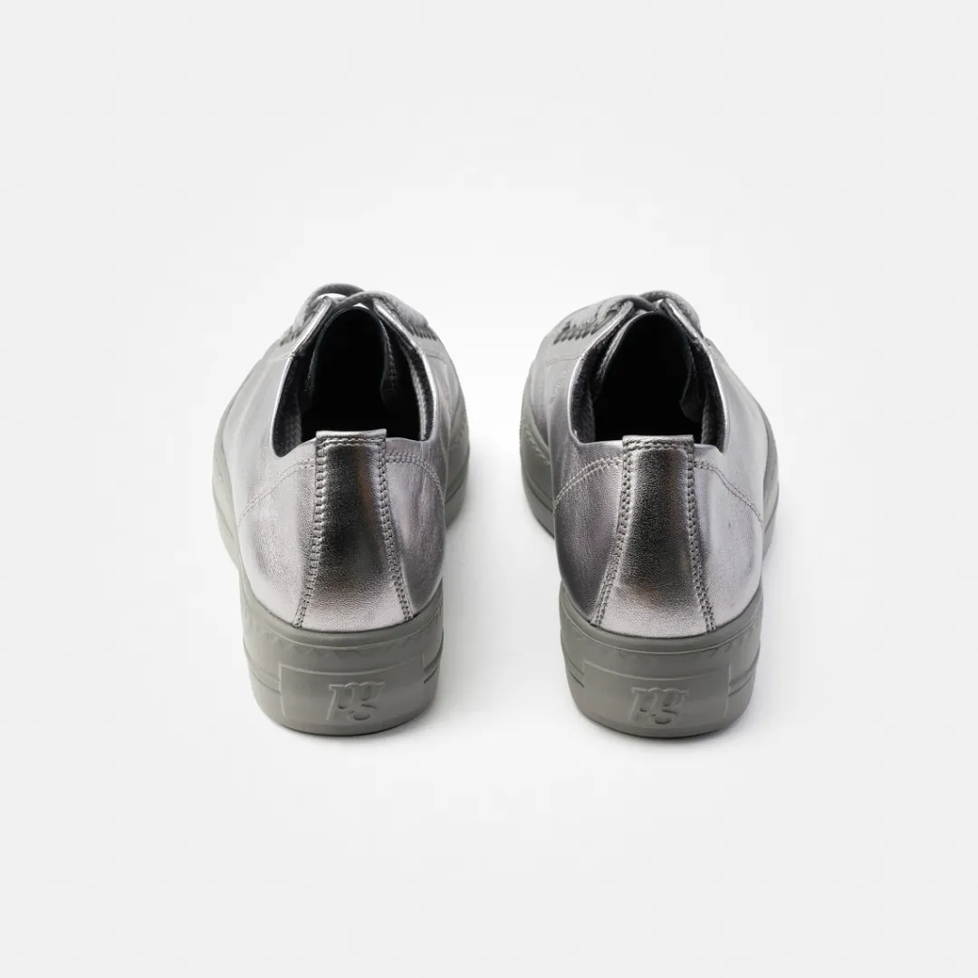 hese platform trainers from Paul Green are your new SUPER SOFT fashion favorites for chic casual looks. Made from high-quality metallic leather in silver, this pair boasts a minimalist design. These sneakers feature a soft leather lining with fluffy TENCELâ„¢ fibers and an extremely soft heel section for unbeatable comfort. The wide sole rounds off the overall sporty look. Give your outfit creations a fashionable finish! Paul Green makes shoes with great passion and mastery, which is expressed in perfection, quality, style and fit. The result: a unique, uplifting wearing experience! The Paul Green effect.