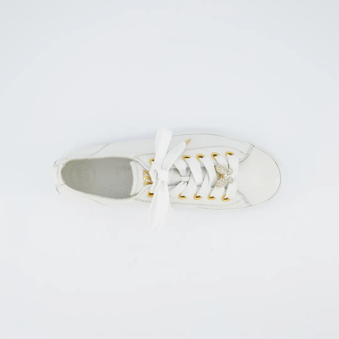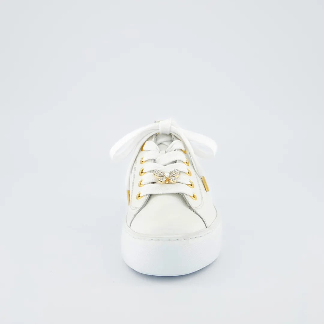 - Made in Europe PFI Eco-Label LWG – Leather Working Group certified, SuperSoft, supple leather, soft heel cap, light and flexible outsole, soft footbed, platform sole, platform sole, logo embossing, decorative stitching, decorative butterfly appliqué with glittering stones on the laces, gold-coloured eyelets, Offwhite: light cream colouring