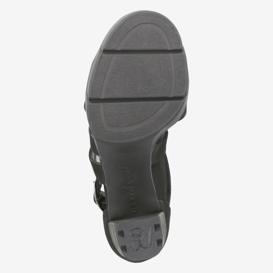 These platform sandals are a feminine, fashionable summer companion. The model made of black nubuck leather with slightly wider straps, allows a lot of light and air to the skin and is not only made for formal occasions. Thanks to an adjustable buckle on the side, the pair easily adapts to the shape of the foot. The look is rounded off by a striking block heel, which ensures a comfortable appearance despite the demanding height. You’ll always be stylish with this pair! Each Paul Green shoe is handmade in up to 160 steps and then inspected. This ensures that it meets the high requirements for fit and quality.