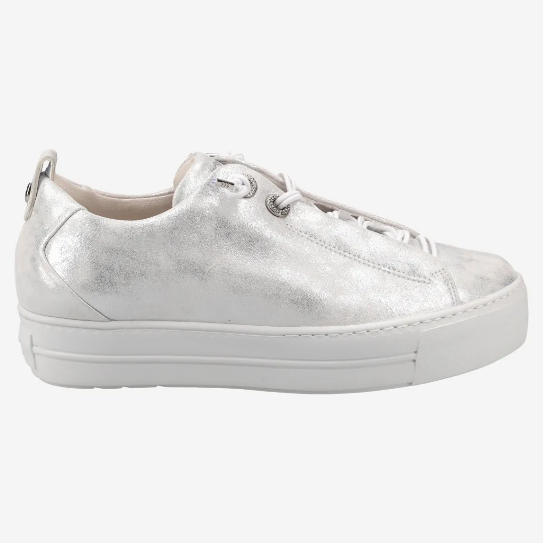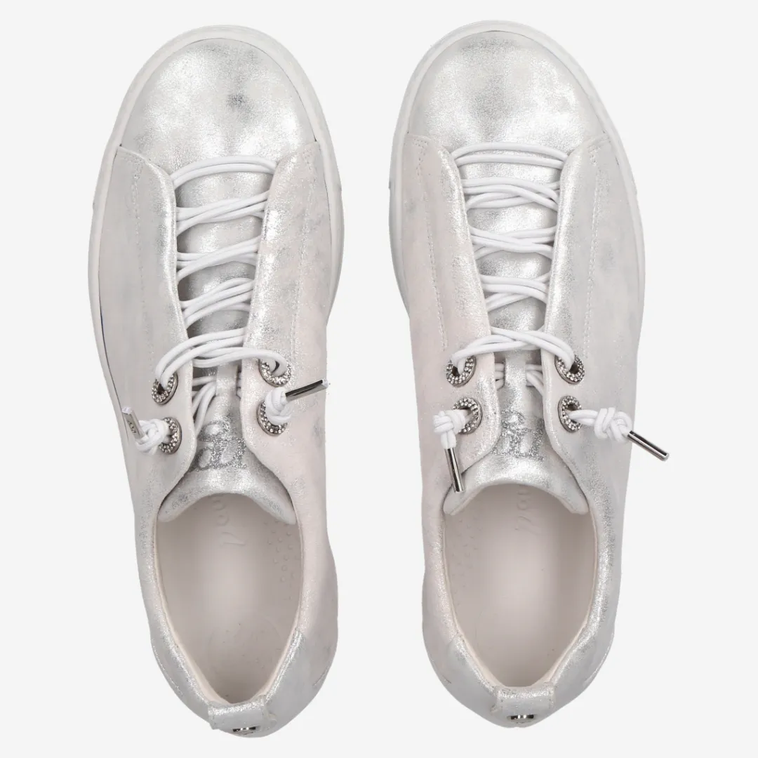 These SUPER SOFT Pauls from Paul Green are perfect for trendy everyday styles. The model impresses with metallized leather and sparkling gemstone trim on the eyelets. The elasticated laces ensure a relaxed feel. Thanks to the super soft finish, this pair provides extra comfort. The wide outsole impresses with its trendy look. A perfect duo for leisure time or the office! Paul Green makes shoes with great passion, which is expressed in perfection, quality, style and fit. The result: a unique, uplifting feel!
