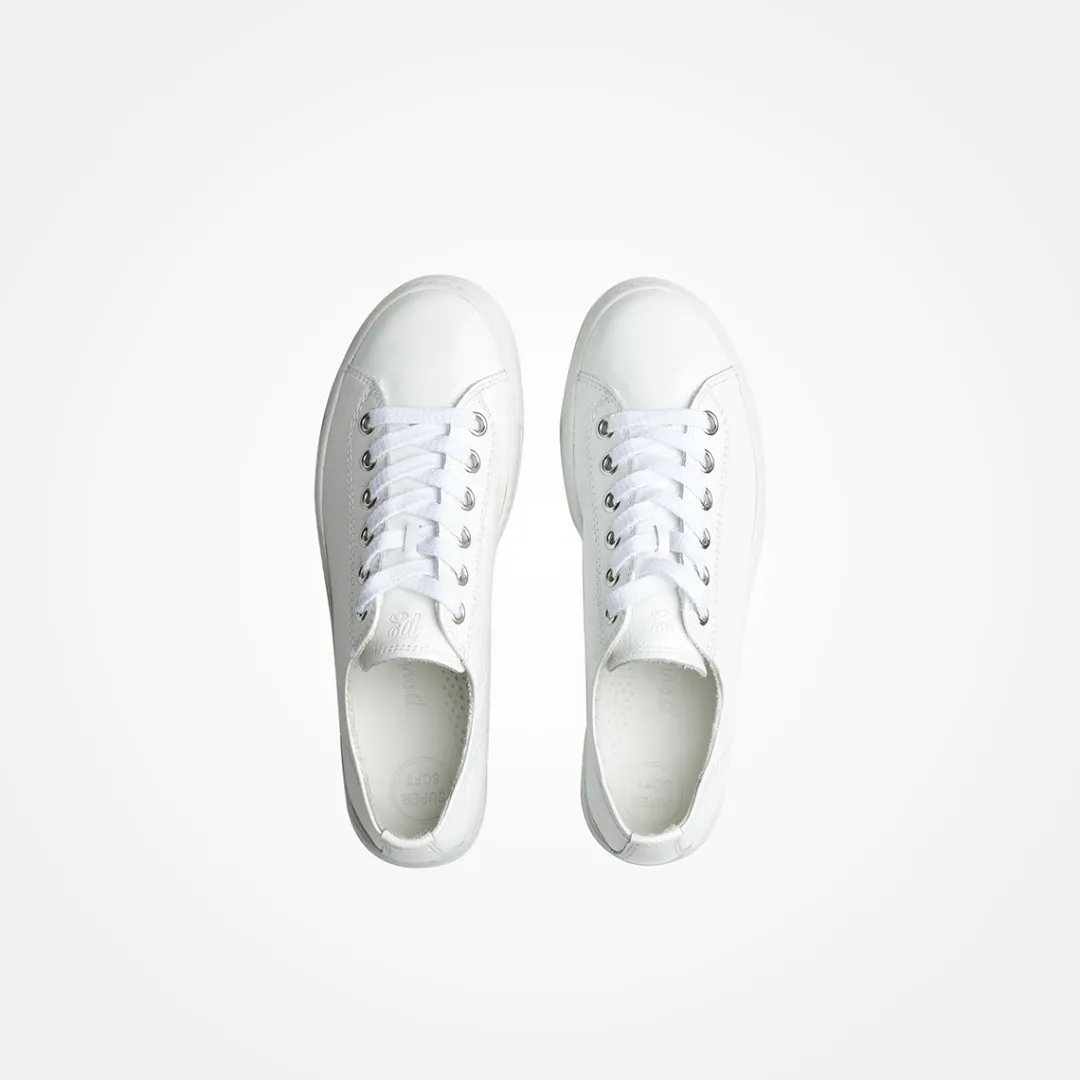 - Super Soft (specially designed leather heel counter), Extralight sole, Platform sole, Decorative stitching, Logo embossing, Terrycloth laces.
