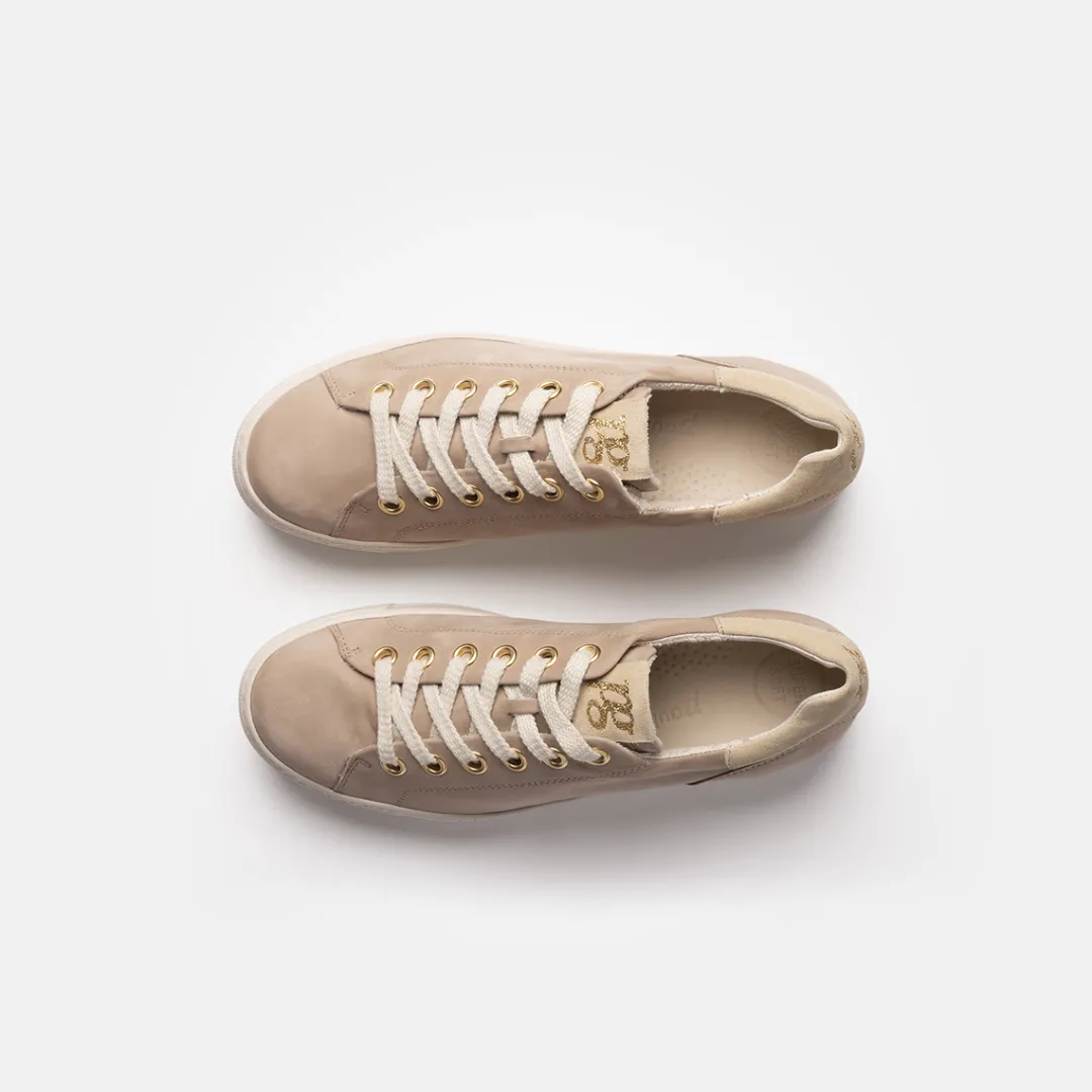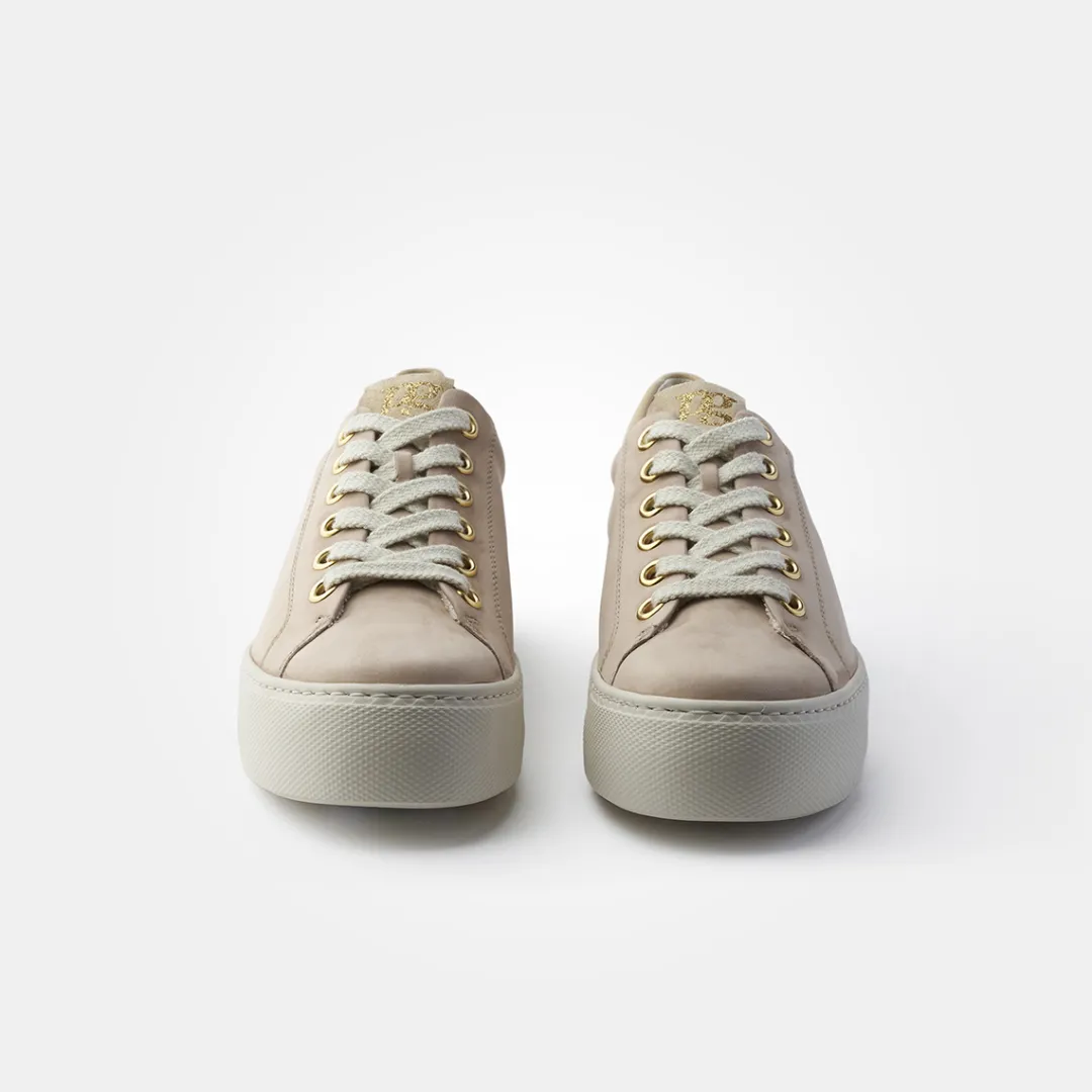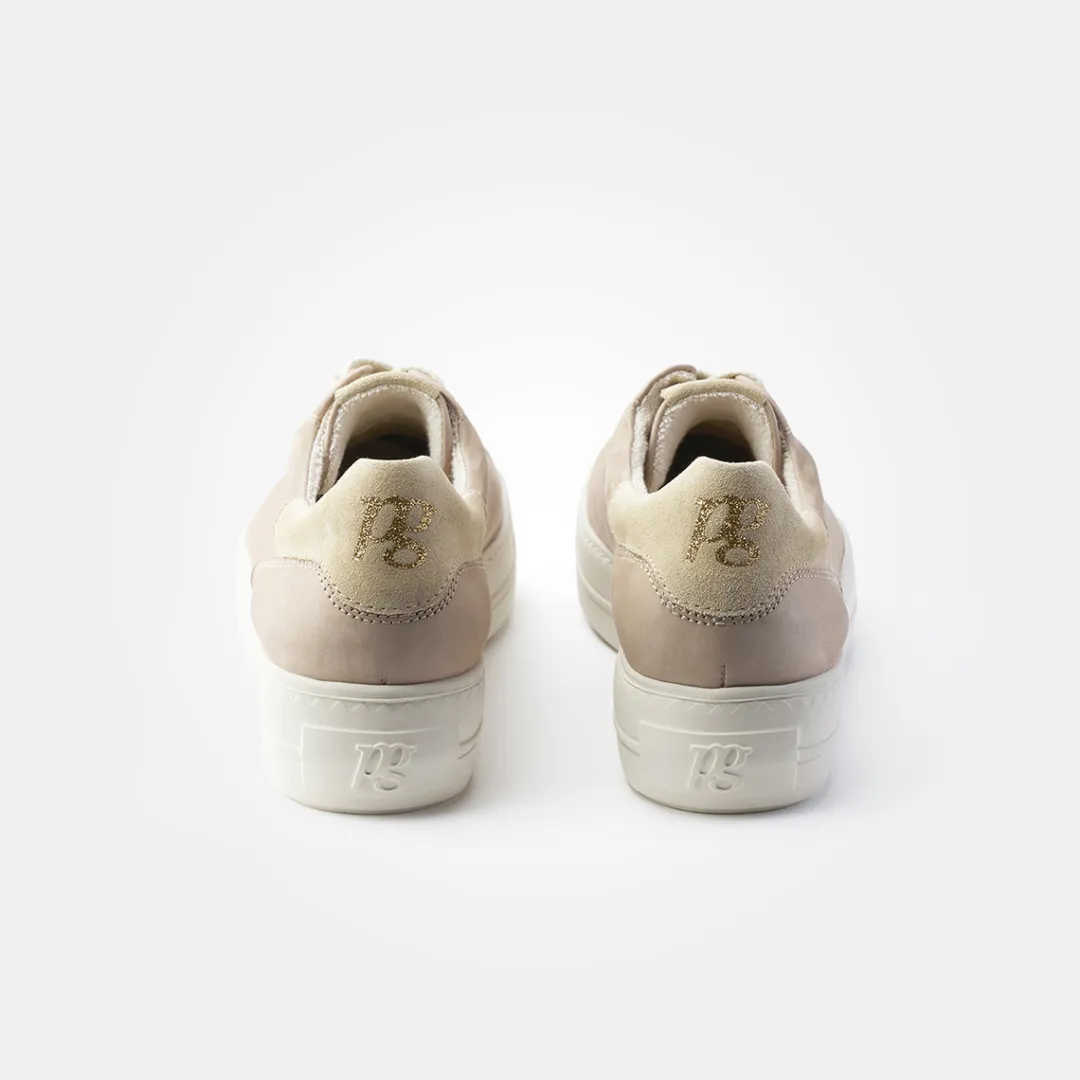 Nothing works this season without these classic SUPER SOFT Pauls from Paul Green. The sneakers have a clean design in soft beige nubuck leather. The matching laces emphasize the sporty casual look and give every foot the right fit. The pair has a leather lining with terrycloth and offers a super soft feel-good factor. The trendy outsole is also very flexible and lightweight, making the sporty chic look perfect. See for yourself: every Paul Green shoe is made by hand in up to 160 steps and then checked. This ensures that they meet the high standards of fit and quality.