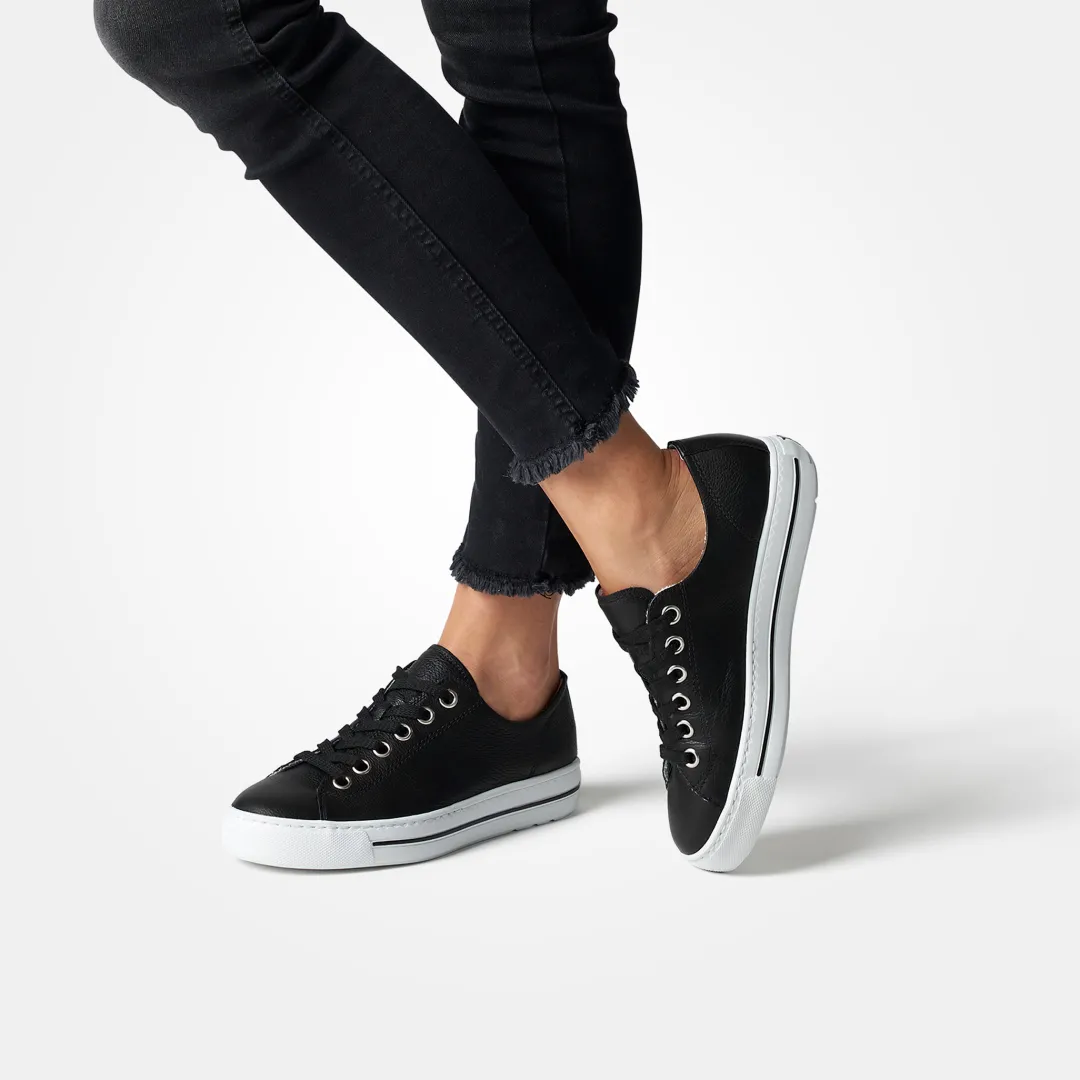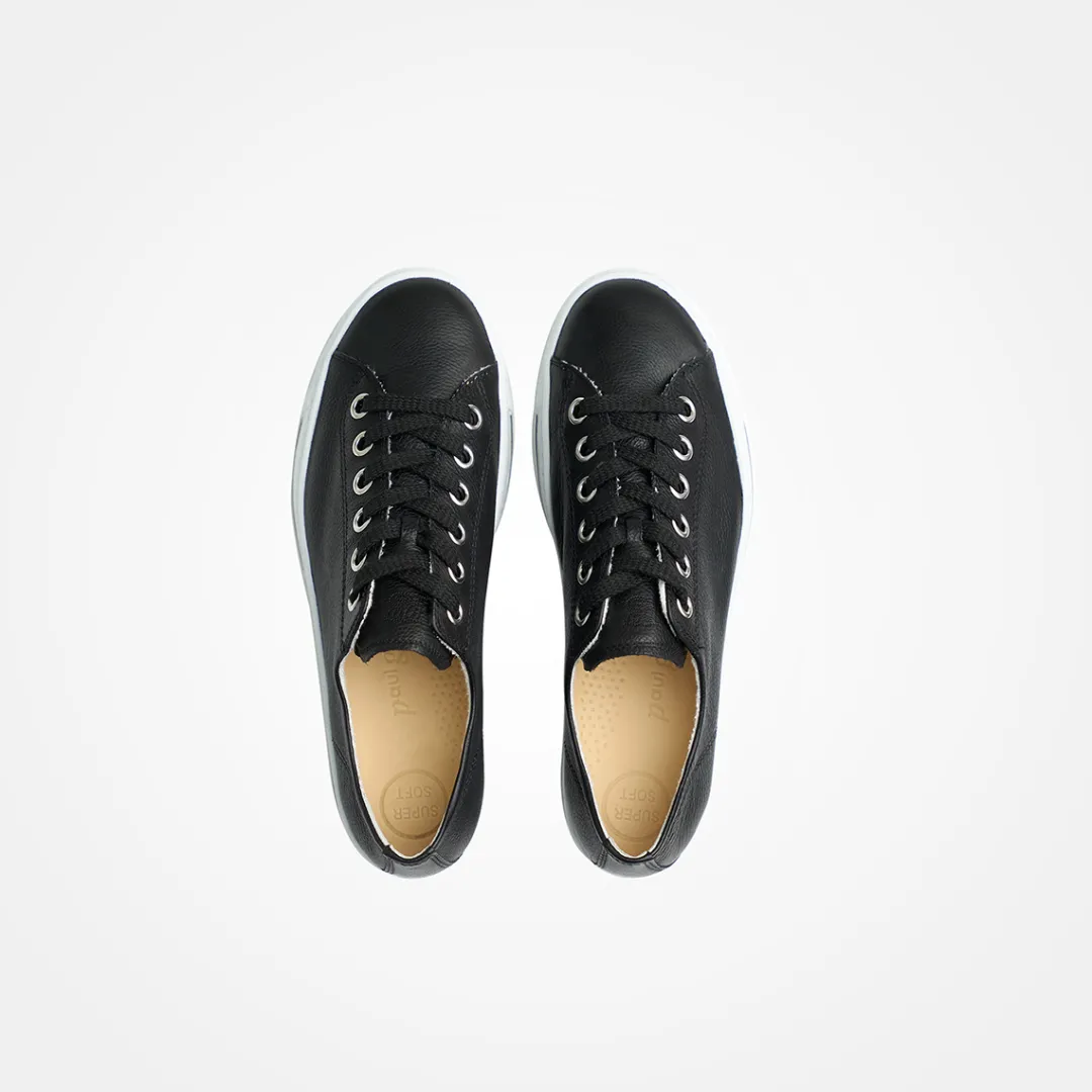 You’ll do everything right with this cute, understated sneaker from Paul Green. The subtle contrast of the black upper and the white sole, the soft PG Soft technology and the extra-light sole are sure to impress. A great companion!