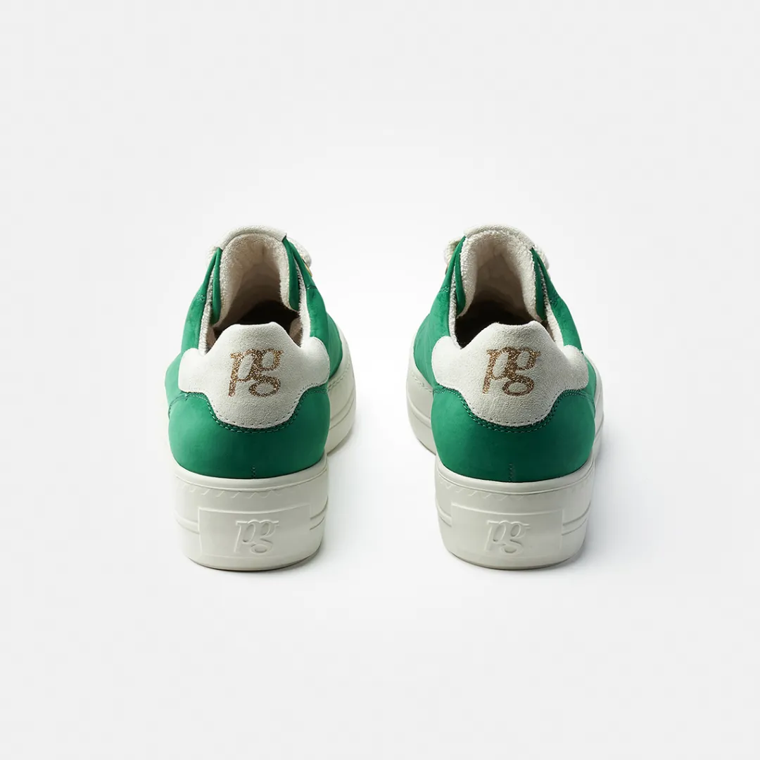 Nothing works this season without these classic SUPER SOFT Pauls from Paul Green. The sneakers are made from soft nubuck leather in a clean green design. The matching laces emphasize the sporty casual look and give every foot the right fit. The pair has a leather lining with terrycloth and offers a super soft feel-good factor. The trendy outsole is also very flexible and lightweight, making the sporty chic look perfect. See for yourself: each Paul Green shoe is made by hand in up to 160 steps and then checked. This ensures that they meet the high standards of fit and quality.