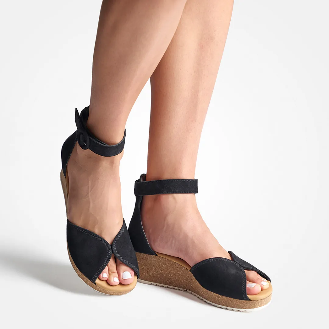 - Individually adjustable, Velcro fastening, wedge heel, decorative metal fastening, decorative stitching, cork heel (cushioning), SuperSoft, supple leather, soft heel cap, lightweight and flexible outsole, soft footbed