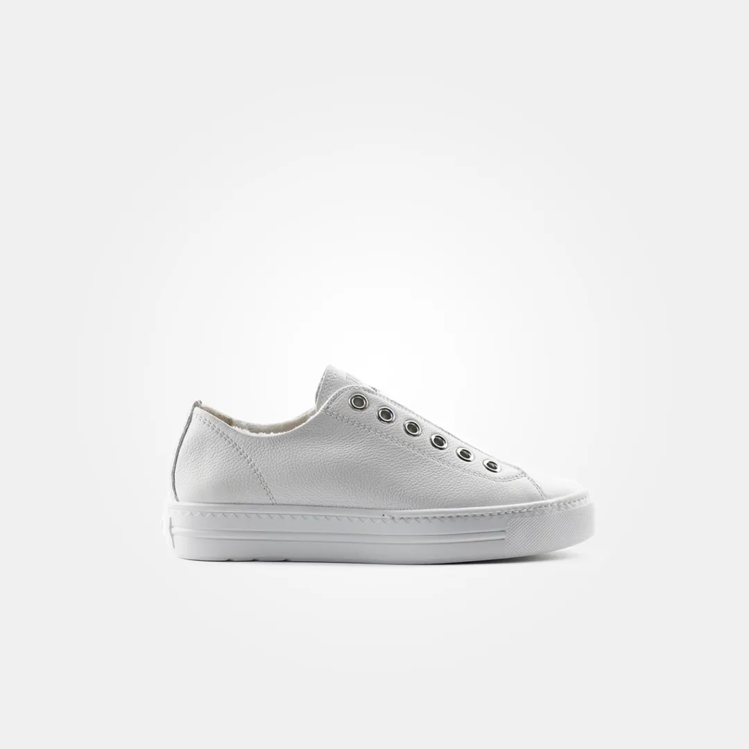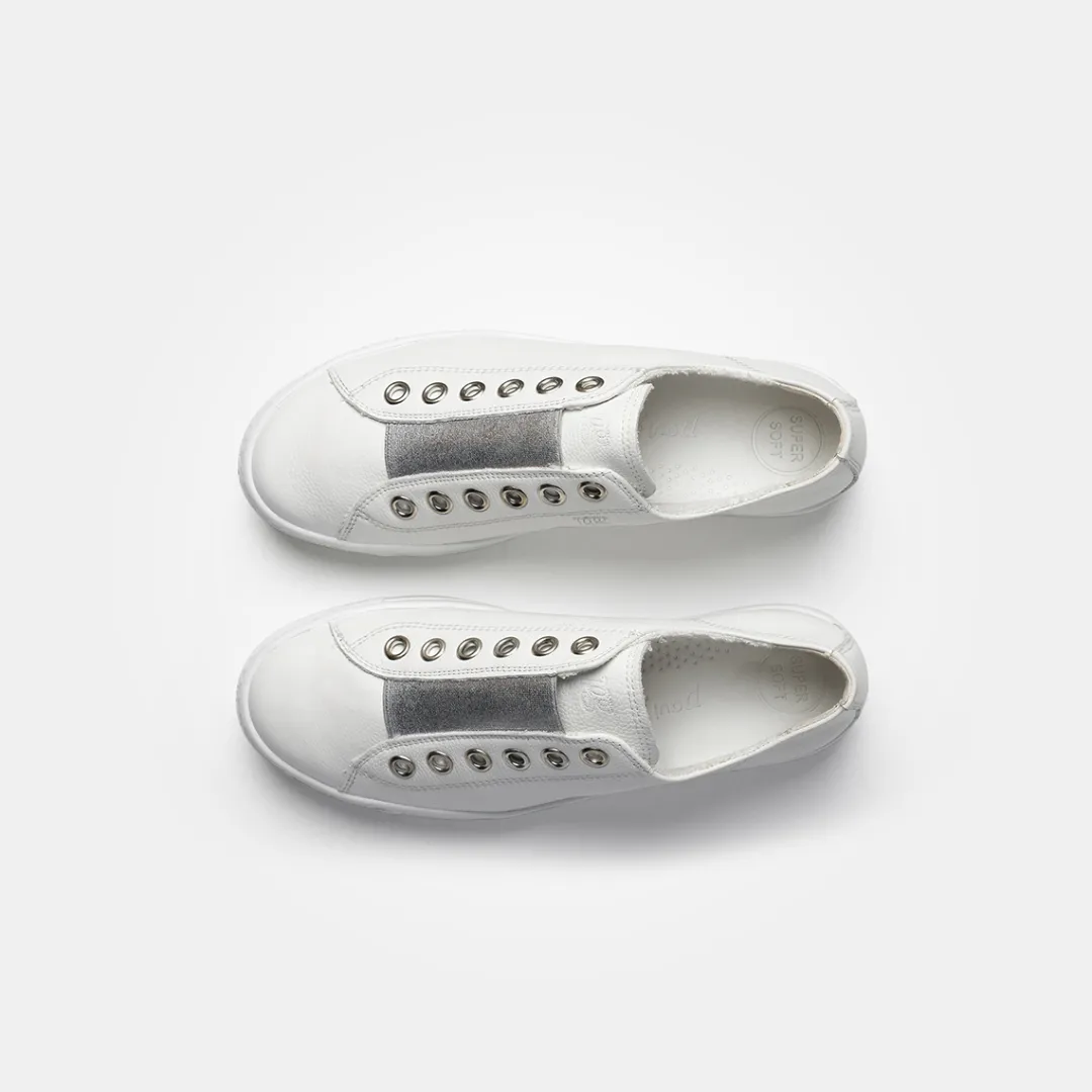 These SUPER SOFT slip-on trainers from Paul Green are trendy and quick to put on and take off. The innovative design in smooth white leather without laces is accentuated by an elegant silver-colored elastic band at the instep. The soft leather lining with TENCELâ„¢ fibers ensures a comfortable feel. Casual and easy on the go – all day long! Paul Green stands for women’s shoes of the highest quality, made with craftsmanship and passion. Each of our shoes is made by qualified master shoemakers in up to 160 steps. The result is quality that you can see and feel.