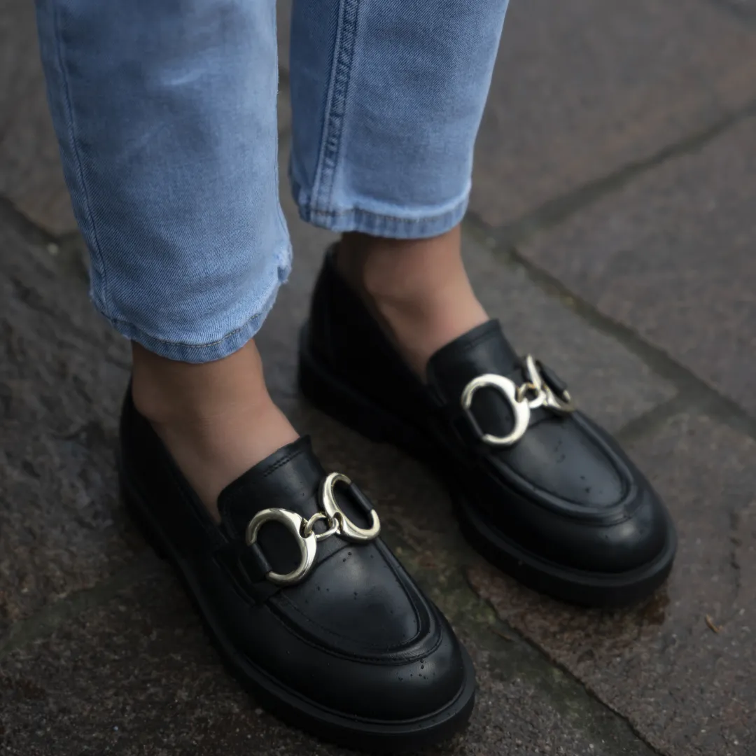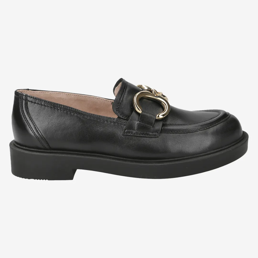 - c, SuperSoft, supple leather, soft heel cap, light and flexible outsole, soft footbed, breathable, loafer application, chain application, stretch inserts, decorative stitching, block heel