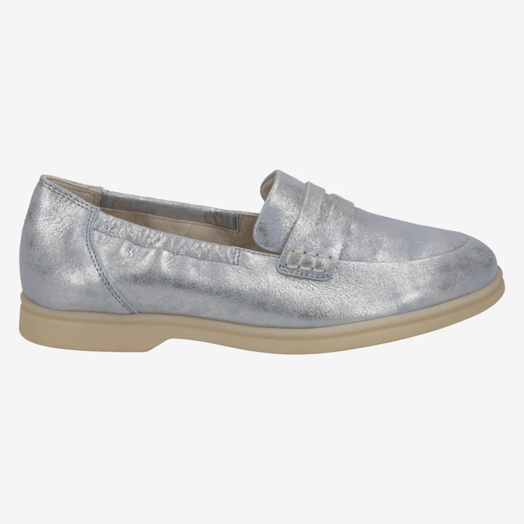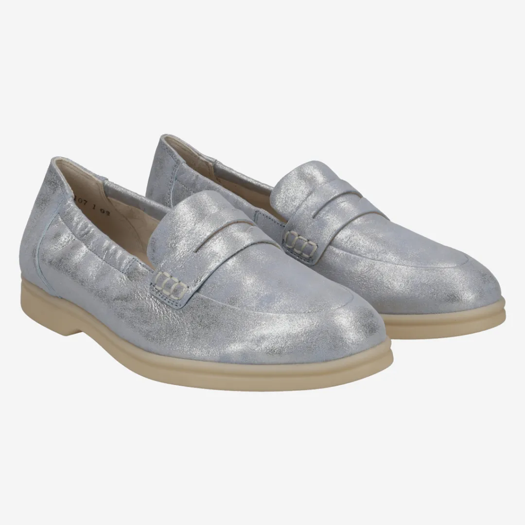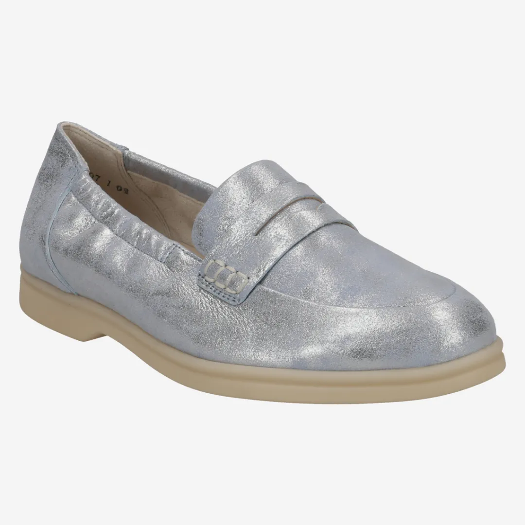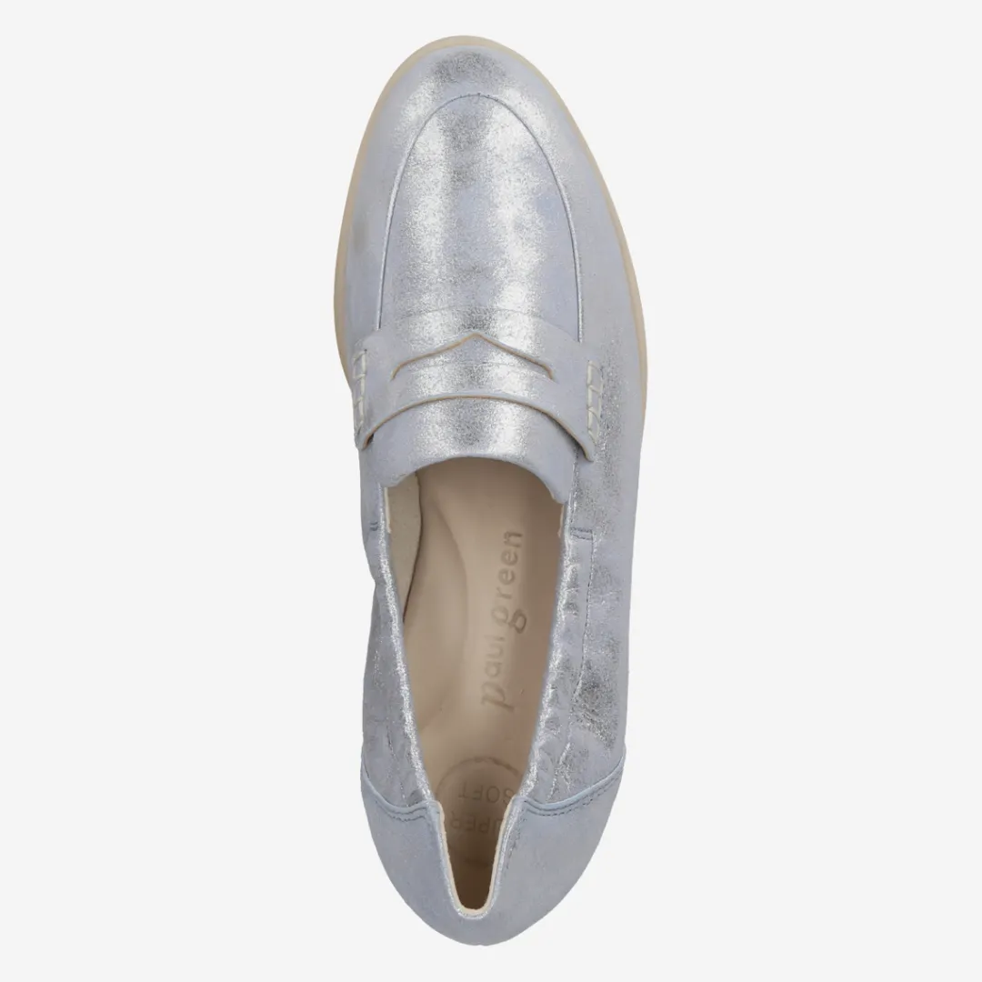 These SUPER SOFT loafers from Paul Green have a classic, sporty look and are comfortable to wear. The popular trendsetters made of light blue metallic leather are extremely light and gently caress the foot. The flexible outsole makes walking a pure pleasure. A model that delights with comfort and ease! Paul Green makes shoes with great passion and mastery, which is expressed in perfection, quality, style and fit. The result: a unique, uplifting wearing experience! The Paul Green effect.