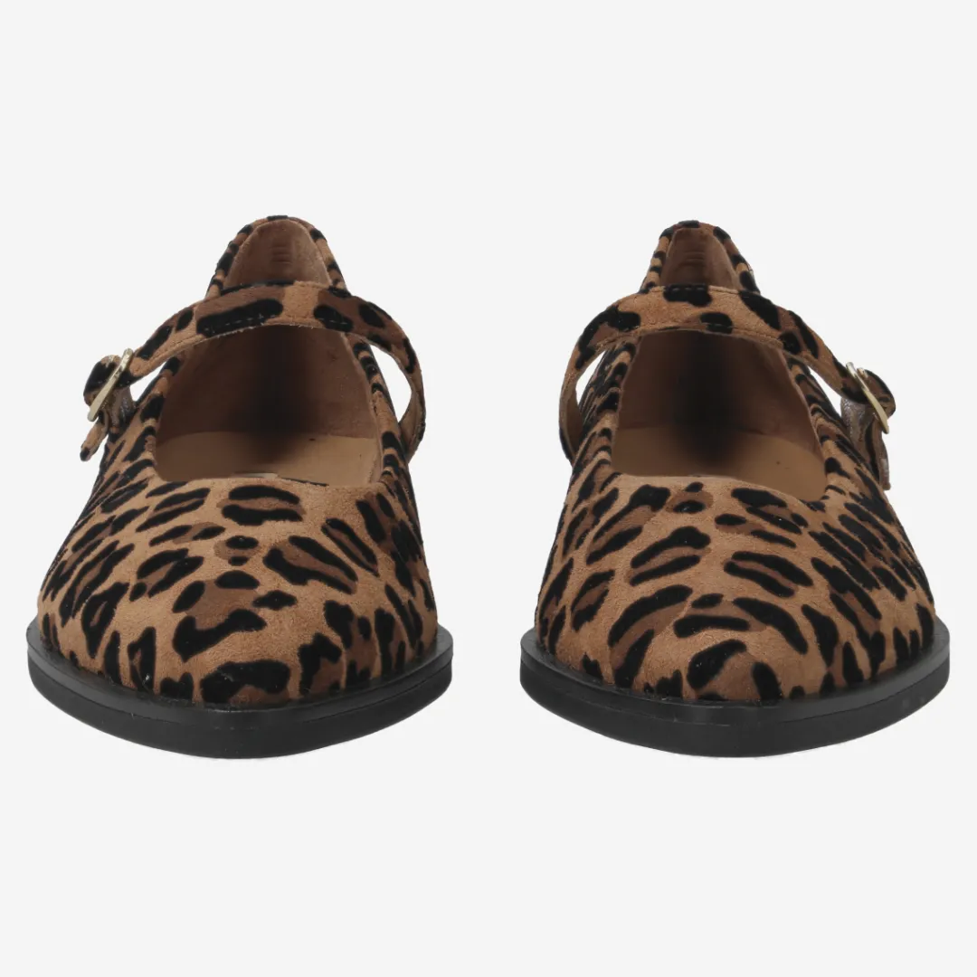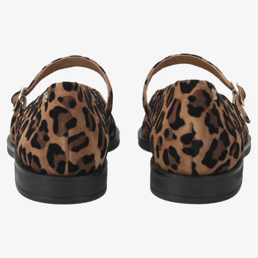 - Metal fastening, Mary Jane with strap for stability, stretch insert, logo appliqué, trendy animal look in leopard print, breathable