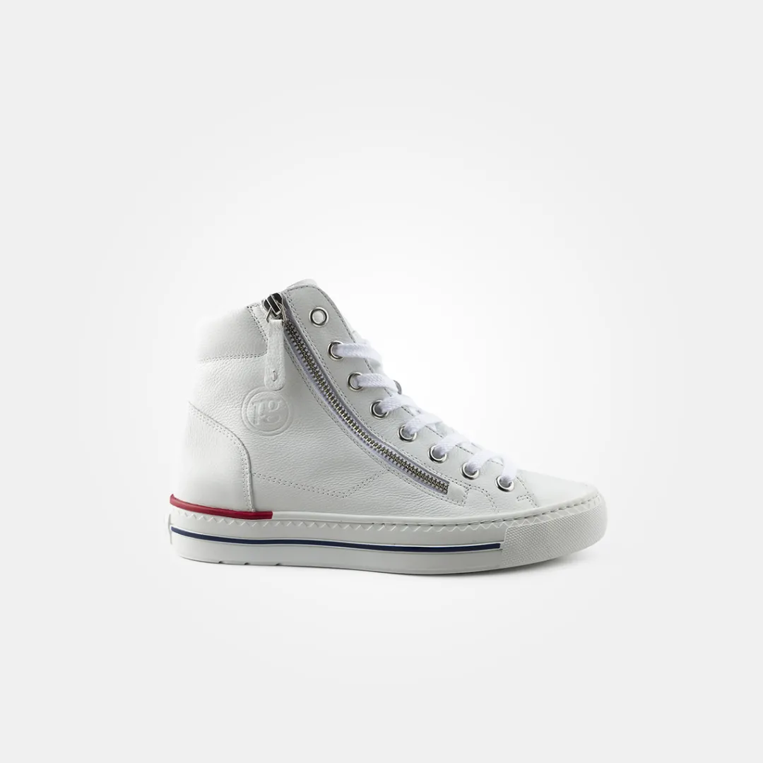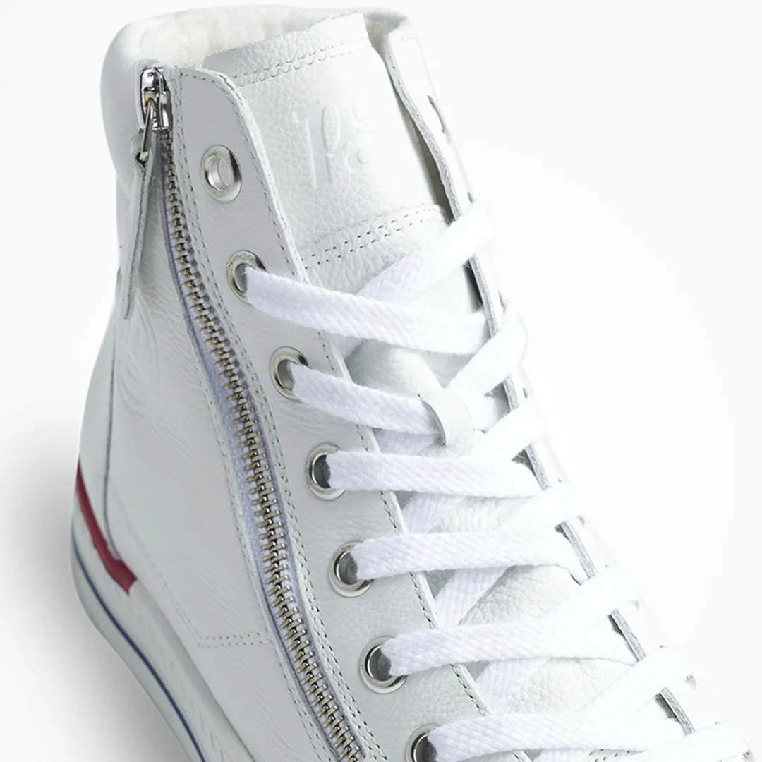 These SUPER SOFT hightop pairs from Paul Green leave nothing to be desired. The casual design made of white smooth leather sets beautiful accents with the chic zipper on the side. A good feeling with every step you owe to the super soft design and the inner lining made of leather with TENCELâ„¢ fibers. Plus, finishing touches like brass eyelets round out the cool overall look. Prove individuality with these sneakers! Each Paul Green shoe is handmade in up to 160 steps and then tested. This ensures that it meets the high requirements for fit and quality.