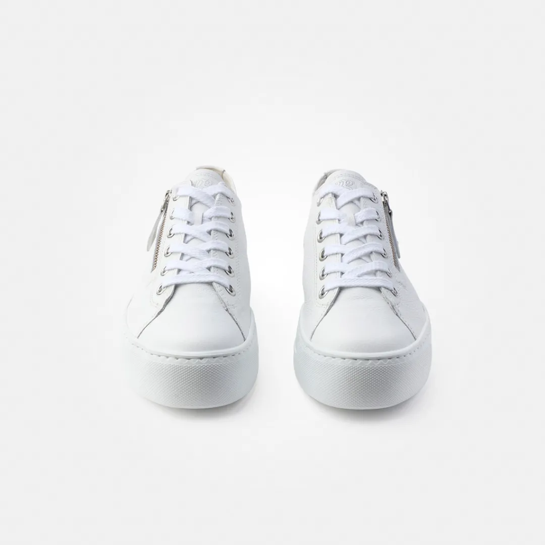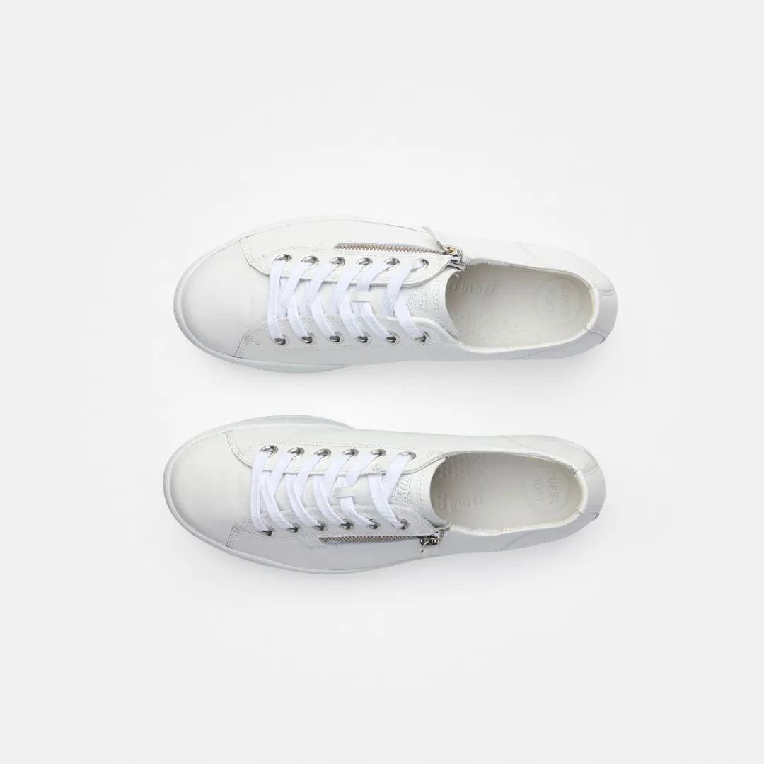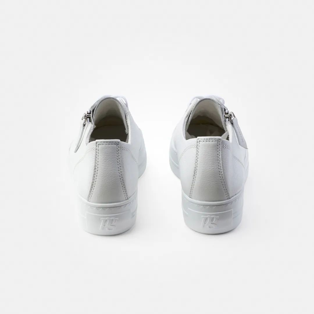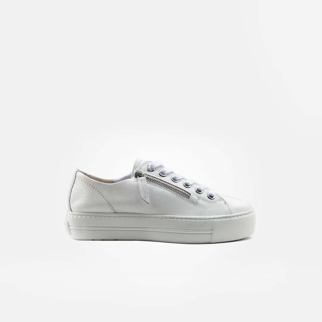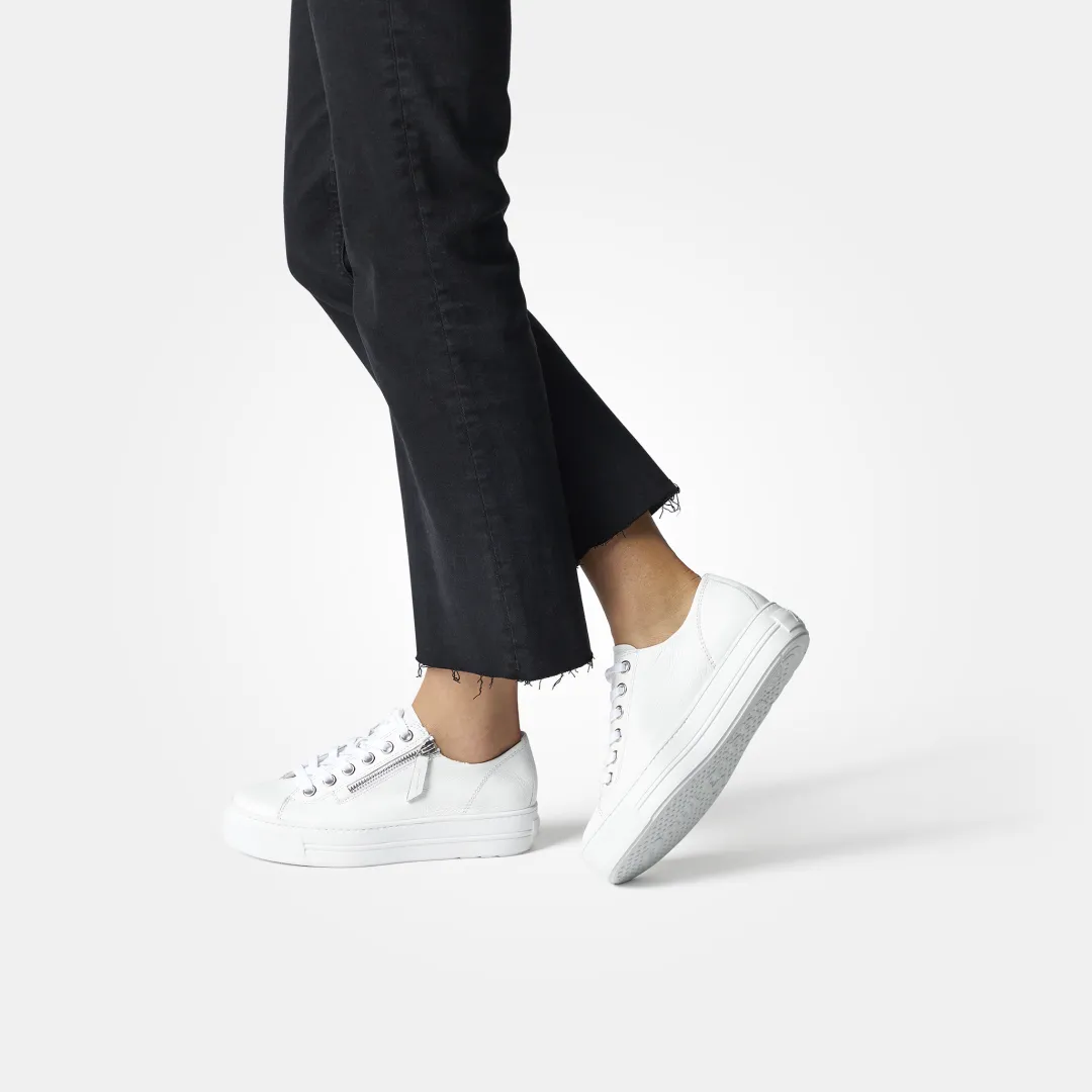 The cult sneaker goes into the next round! Paul Green processed in this platform sneaker high-quality white calfskin. The look is complemented decoratively and functionally by the zipper, because this makes getting dressed a breeze. The special SuperSoft technology guarantees you additional comfort and optimal cushioning.