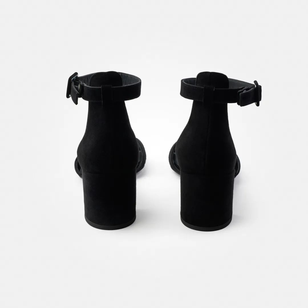 Stylish appearance in noble black! The velvet leather of this Paul Green sandal gives you an elegant gait, which is further supported by the clean design. The beautiful block heel gives you an extravagant silhouette. The delicate ankle strap with adjustable buckle ensures perfect comfort and convinces thanks to the push button for quick on and off. Comfort in cool design!, Reduced single pair!