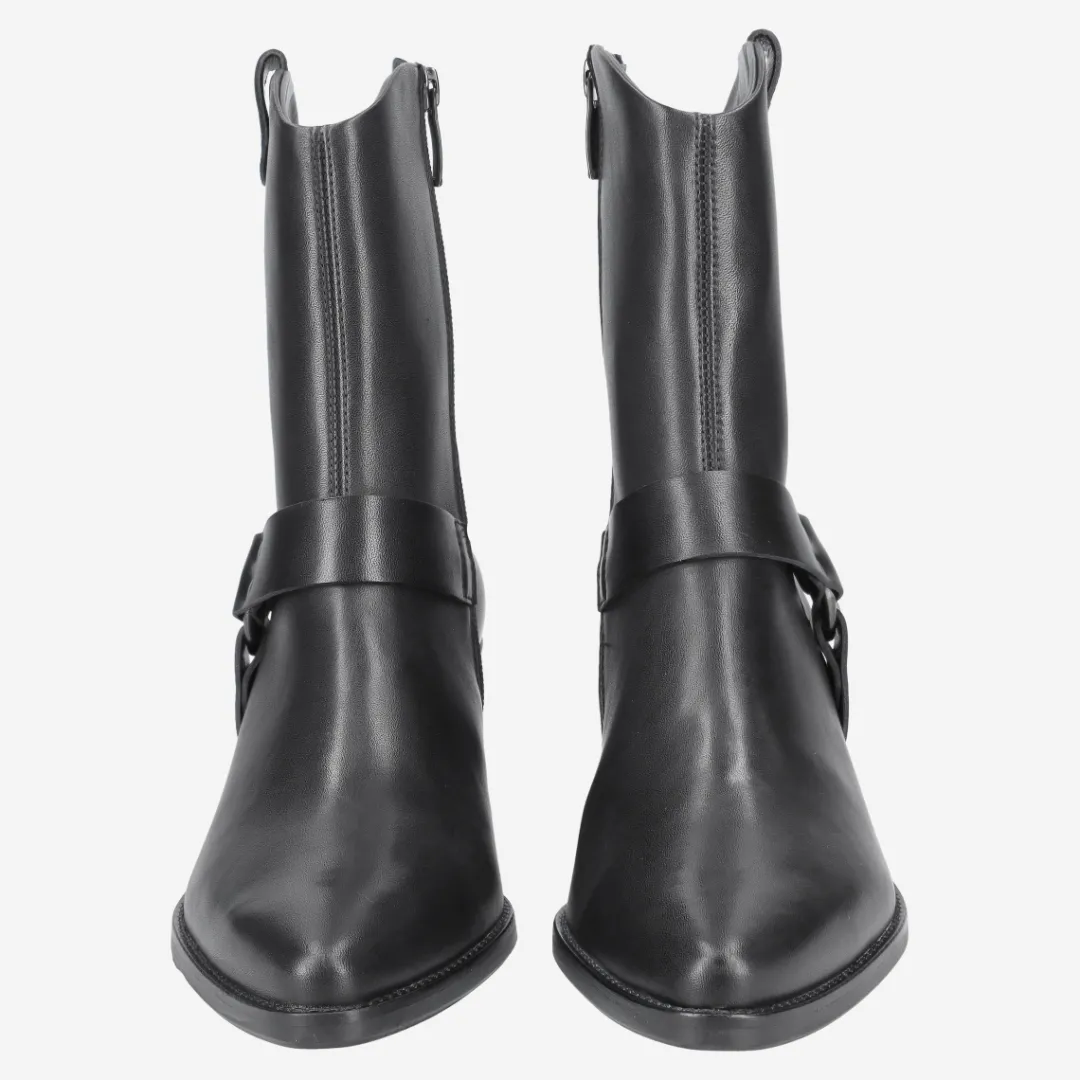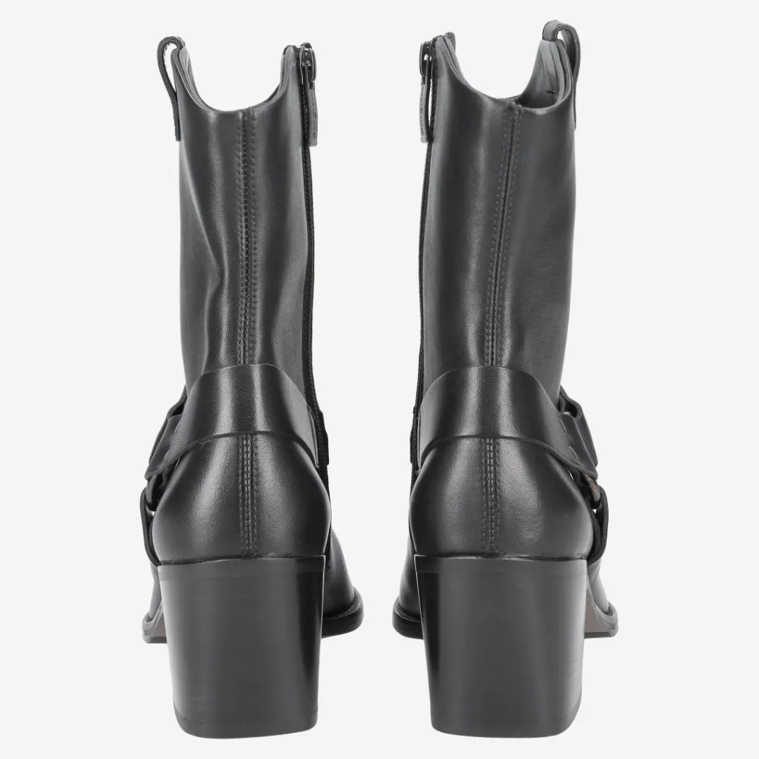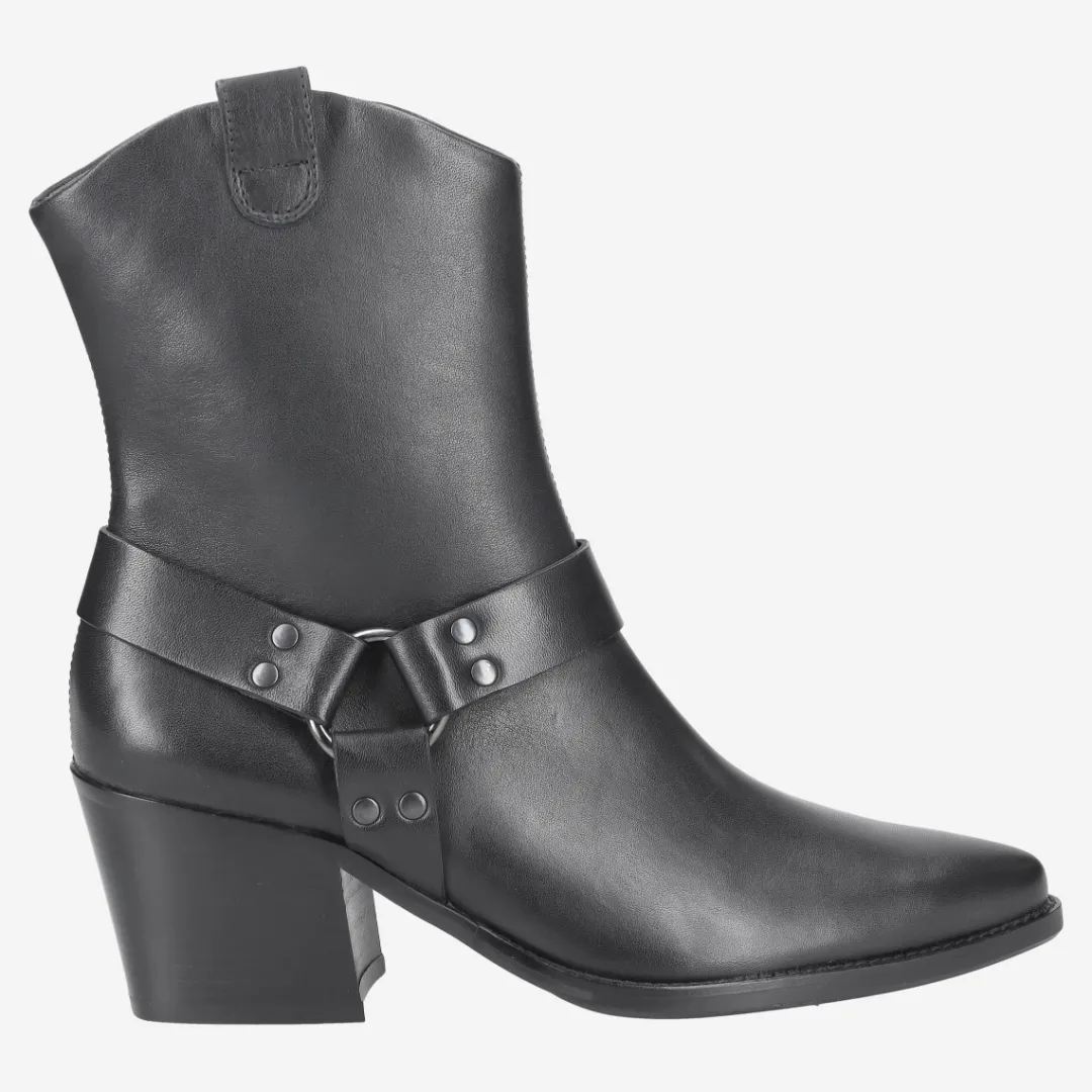 - Zipper, metal fastening with stylish decorative straps,, block heel, Made in Europe PFI Eco-Label LWG – Leather Working Group certified, metal application, entry loop, breathable, leather straps in biker look, Western-style design