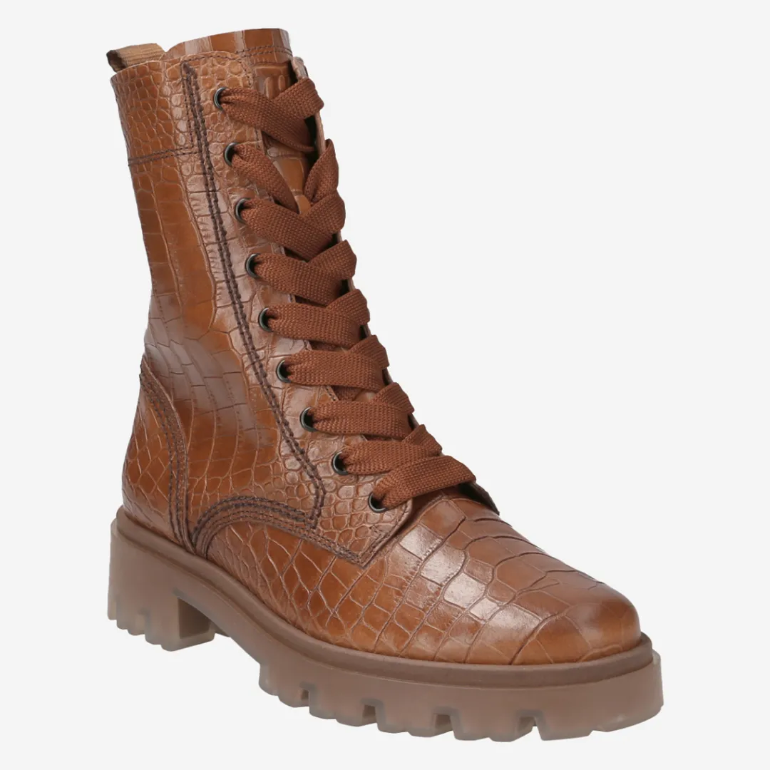 With these boots you give her autumn look an unmistakable sporty touch. The brown leather in reptile look enhances the shoe and thus their look and ensures trendy appearances. The sole in partially transparent optics makes the shoe unique and it creates a harmonious overall picture. Via the zipper the entry is very easy, so you can use the lacing only for your individual adjustment.