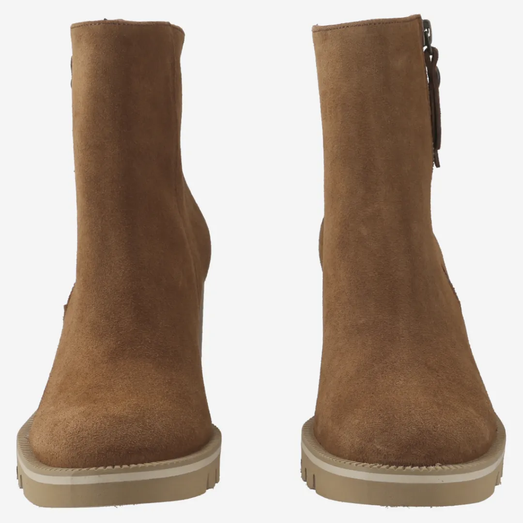 Those who love a strong appearance wear these ankle boots from Paul Green. They are comfortable, casual and give a cool finish to any look. The bootie made of medium brown suede looks very classy with the zipper on the side. A blocky heel makes the look trendy and gives good support with every step. A shoe that makes attractive long legs! Paul Green makes shoes with great passion and mastery, expressed in perfection, quality, style and fit. The result: a unique, uplifting wearing experience! The Paul Green effect.