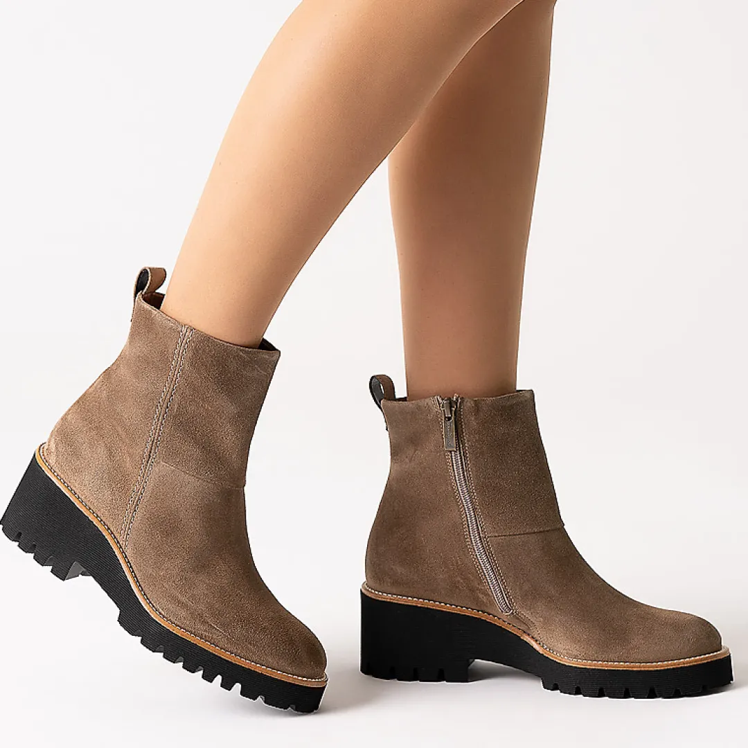 These trendy ankle boots from Paul Green inspire with their simple lines. The suede in deer brown / beige conjures the model to a real eye-catcher of the golden season. The practical zipper allows you to easily put on and take off. The black, soft outsole with brown frame provides the perfect grip. With it you will reach your destination safely!