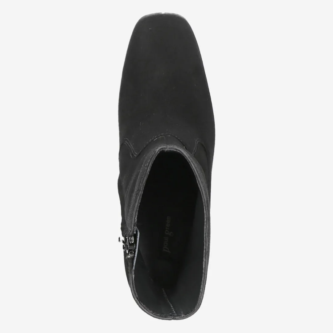 Whether with dress or trousers: These noble ankle boots from Paul Green are always a good choice. The noble processing of black velvet leather in classic style ensures a perfect wearing comfort. The zipper on the inside optimizes effortless dressing and undressing. A blocky heel in moderate height optimizes the comfort. A model for multiple occasions! Paul Green shoes have a DNA of elegance and sportiness. This DNA is in every single shoe and in the entire range.