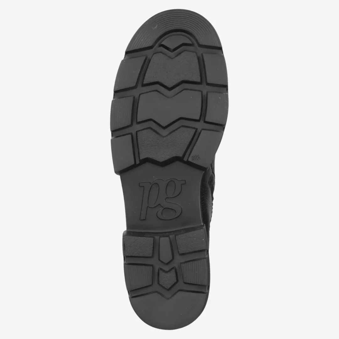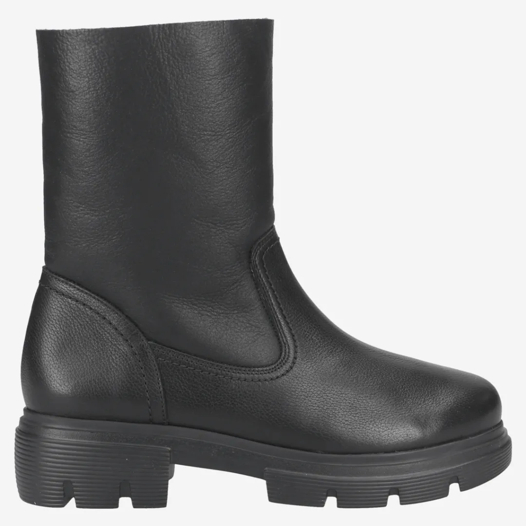 A good reason to leave the house despite cold temperatures, offer these black leather ankle boots from Paul Green. The comfortable pair with lambskin lining keeps feet warm. An interior zipper makes it easy to get on. The striking tread sole rounds off the overall look perfectly. Treat yourself to real winter favorites! Paul Green makes shoes with great passion and mastery, expressed in perfection, quality, style and fit. The result: a unique, uplifting wearing experience! The Paul Green effect.