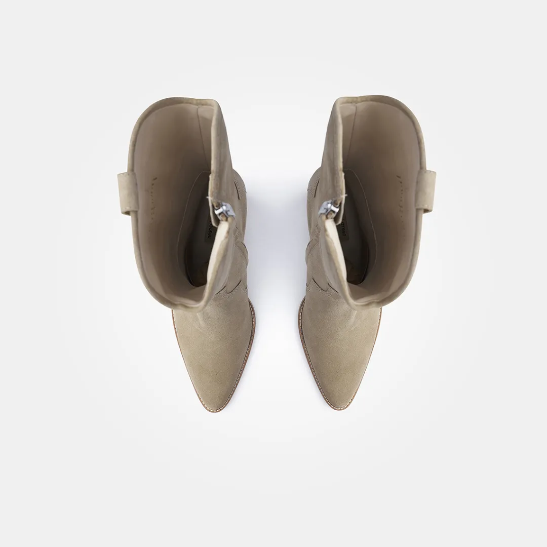 Get inspired for the upcoming season with these trendy Western-style boots from Paul Green. The model is made of soft suede in beige and creates a stir with the pointed toe cap and matching blocky heel. The shaft with side zipper perfectly hugs the leg. Whether paired with a skirt or dress, these boots are always an authentic choice! Paul Green makes shoes with great passion and mastery, expressed in perfection, quality, style and fit. The result: a unique, uplifting wearing experience! The Paul Green effect.