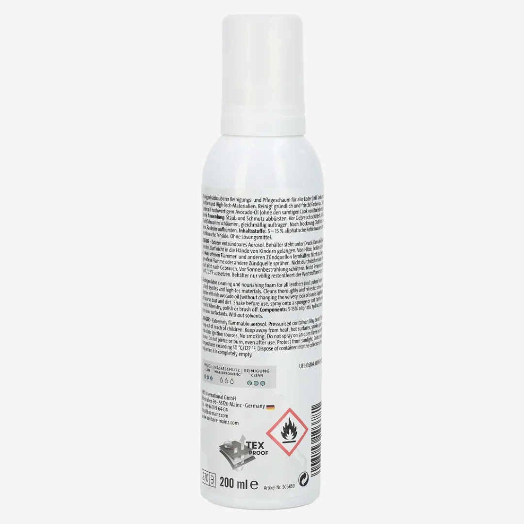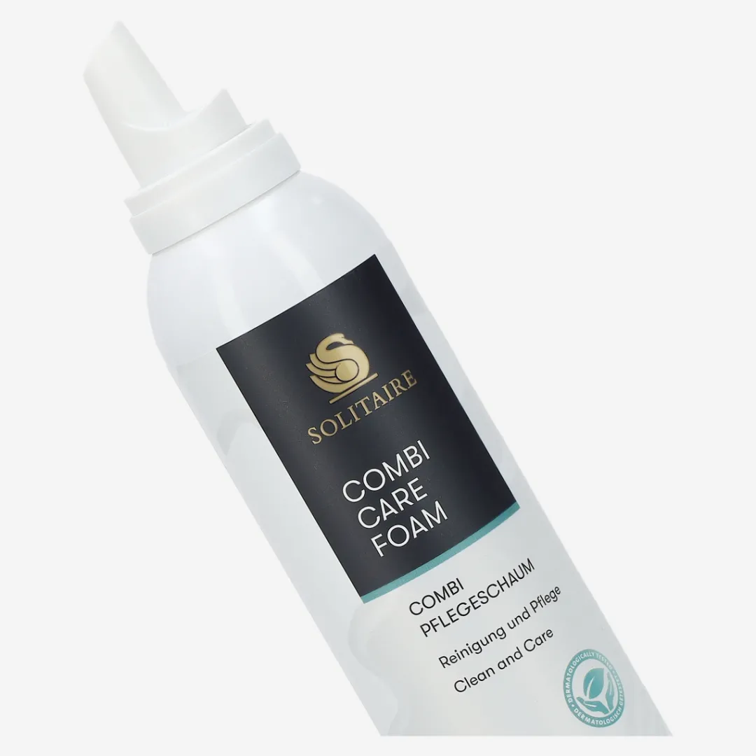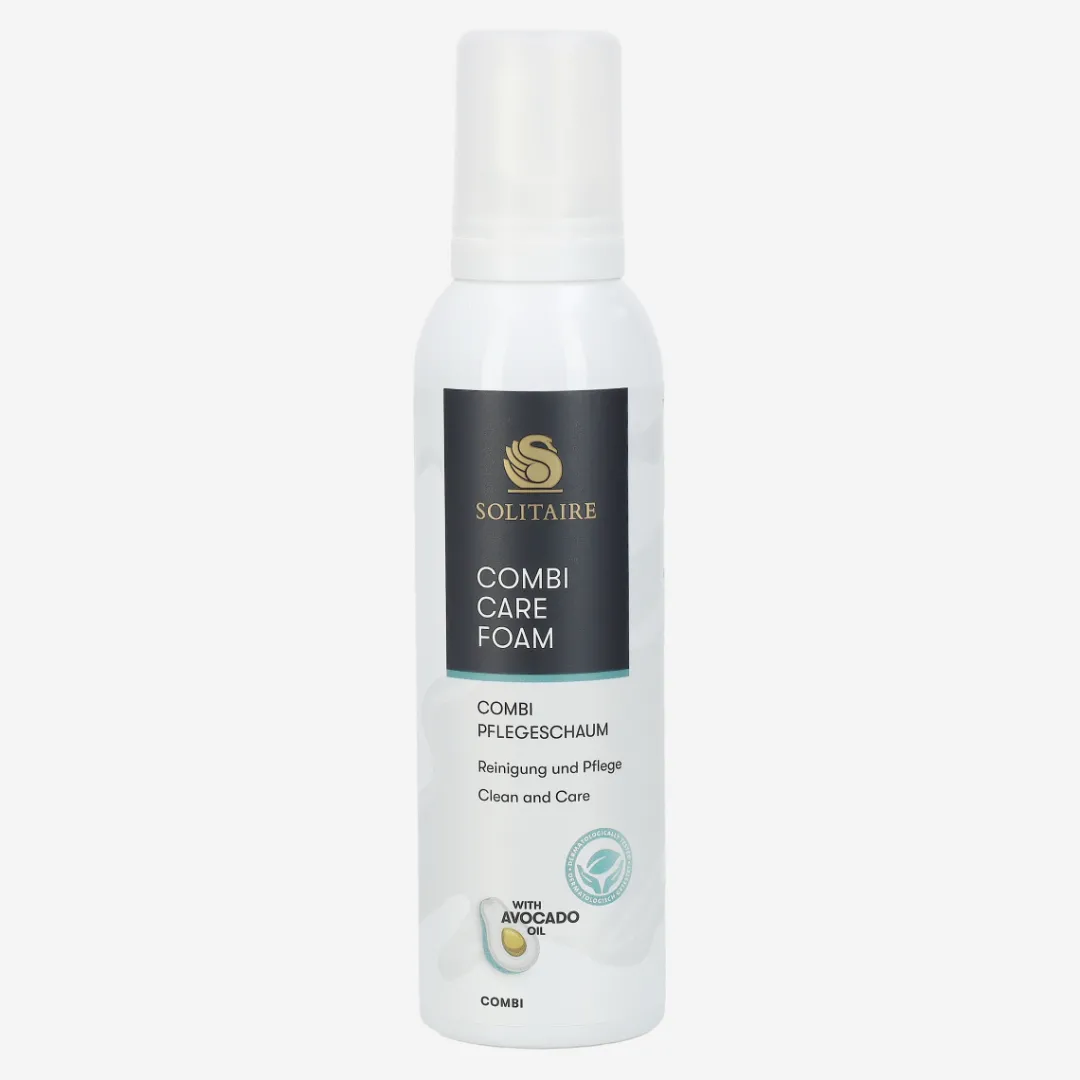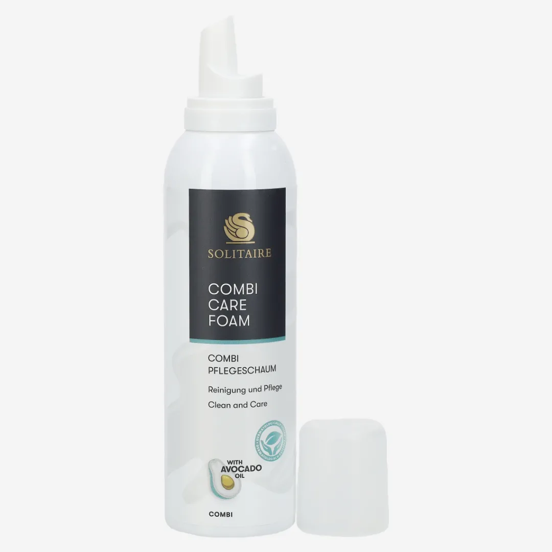 Combi care foam from Solitär. Suitable for smooth and suede leather combinations as well as textiles and applications. Not suitable for water-soluble antique finishes). High-quality cleaning and care foam – cleans thoroughly, refreshes colors. Content: 200 ml Application instructions: Remove dust and dirt from the material. Apply the Combi Care Foam to a sponge or soft cloth and spread the foam over the material to be cleaned. Allow it to work in briefly and polish it on smooth leather or brush it on rough leather.