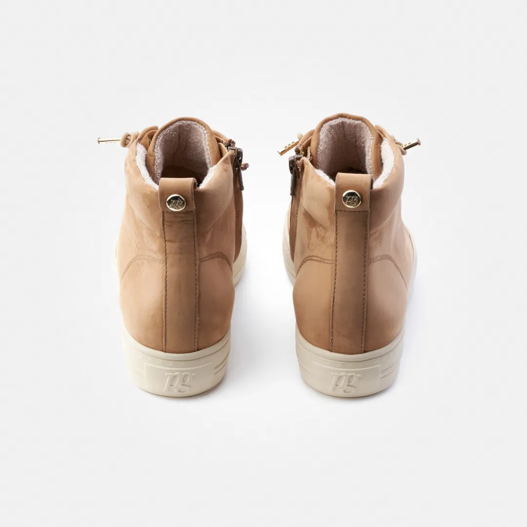 These fashionable SUPER SOFT high-top trainers are completely comfortable and therefore perfect for leisure time. The model impresses with soft nubuck leather in brown. The elasticated laces complete the relaxed feel. A concealed zipper on the inside makes them easy to put on and take off. The soft leather lining with TENCELâ„¢ fibers will delight you with its excellent comfort. Prove your individuality with these trainers! Paul Green makes shoes with great passion and mastery, which is expressed in perfection, quality, style and fit. The result: a unique, uplifting feel! The Paul Green effect.