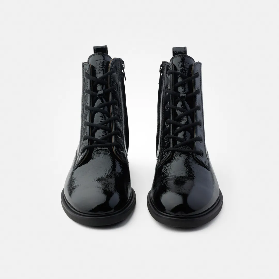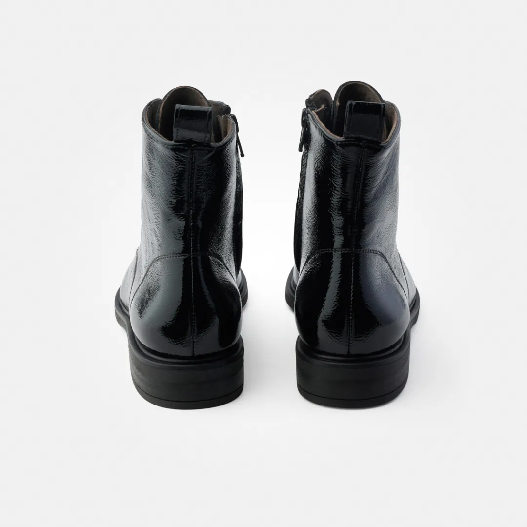 - Made in Europe PFI Eco-Label LWG – Leather Working Group certified, SuperSoft, supple leather, soft heel cap, light and flexible outsole, soft footbed, upper material in patent leather in crumpled look (flat, fine pleat structure guarantees optimum flexibility and prevents hard creases), zipper, embossed logo, entry loop
