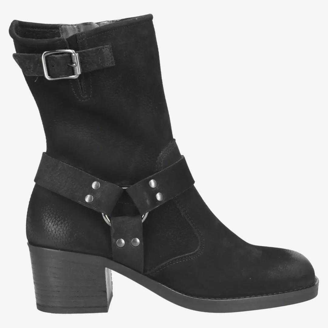- Made in Europe PFI Eco-Label LWG – Leather Working Group certified, block heel, decorative metal fastening on decorative notch on the shaft, leather straps in biker look, decorative stitching, vintage look, zipper, breathable