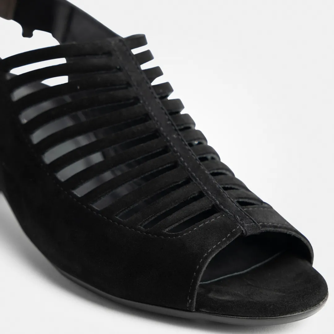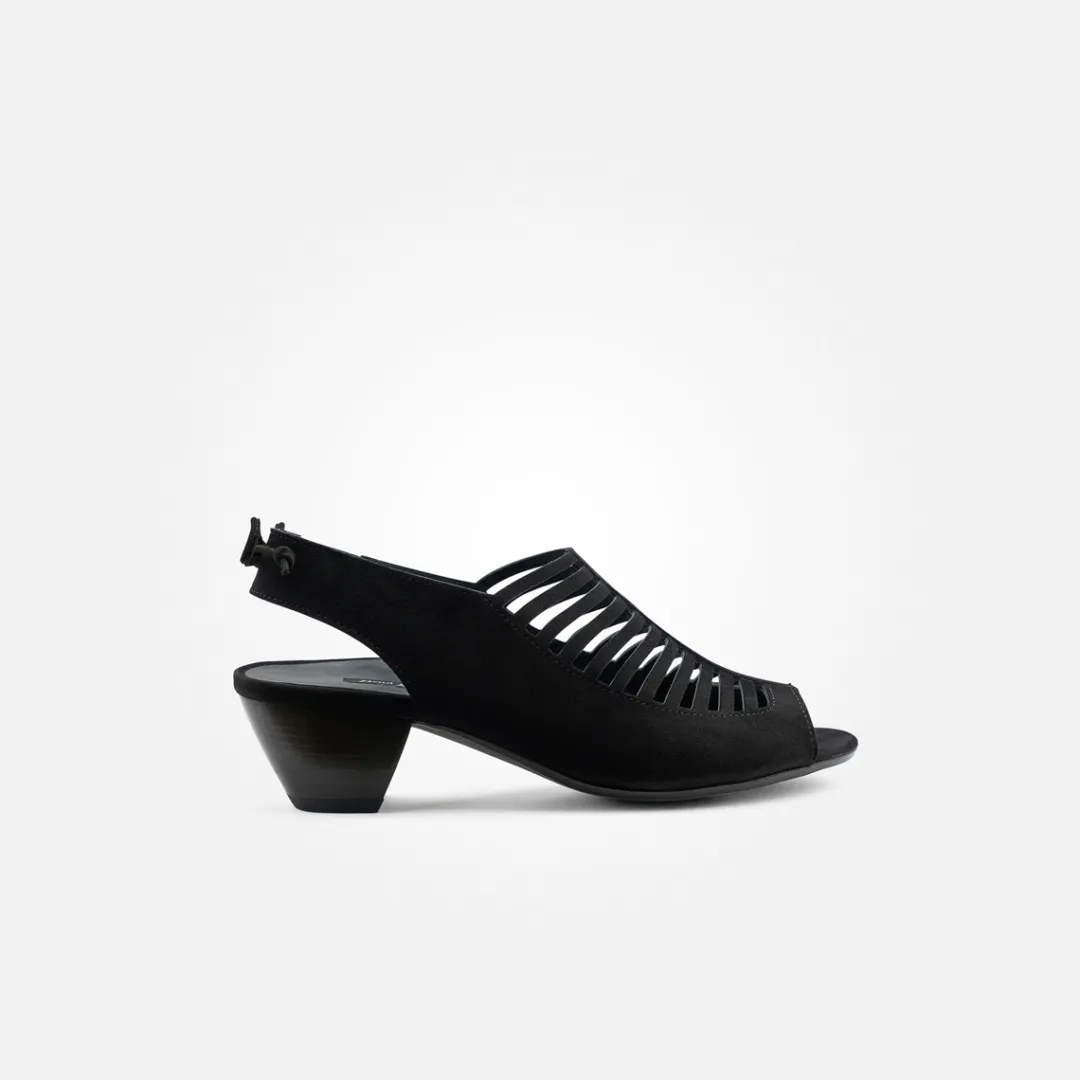 Add a touch of 70s charm to your look with these sandals from Paul Green. Soft velvet leather in black with cut-outs and a chic bow on the heel strap allow plenty of air to reach the skin. The elasticated strap adapts perfectly to the foot. A blocky funnel heel rounds off the style perfectly and also ensures an extremely comfortable appearance. Summer can come! Paul Green makes shoes with great passion, which is expressed in perfection, quality, style and fit. The result: a unique, uplifting feel!
