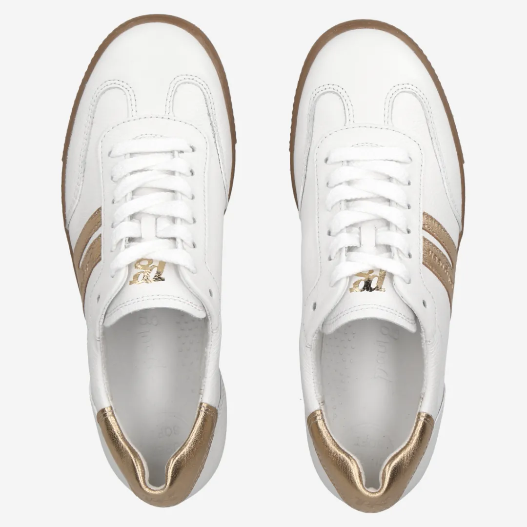 - Logo embossing, decorative stitching, leather appliqué in gold-coloured metallized leather, SuperSoft, supple leather, soft heel cap, lightweight and flexible outsole, soft footbed, retro sneaker Vibe