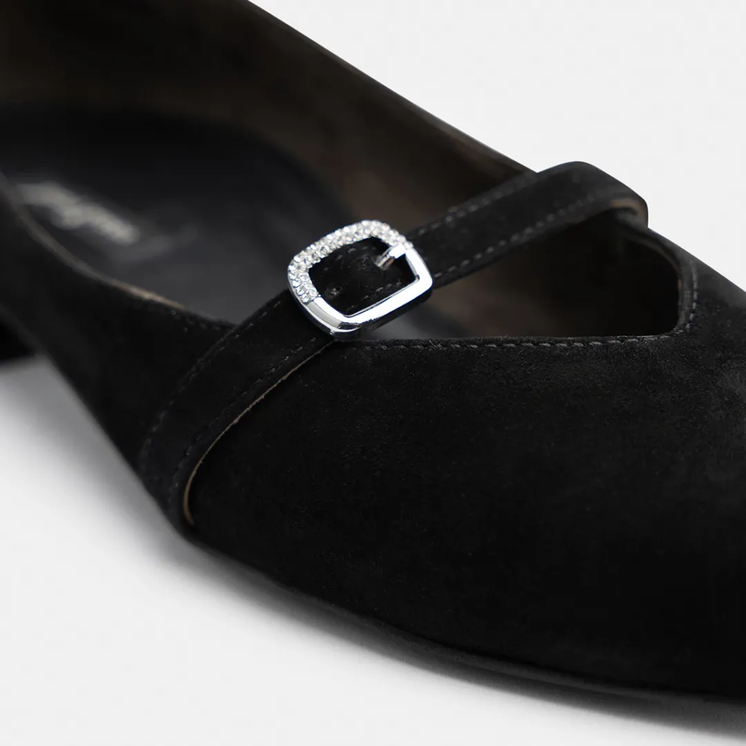 Style-conscious fashion women love ballerinas, because they combine elegance and comfort. Like this super soft model by Paul Green made of soft velvet leather in black, which is styled very trendy with instep clasp and noble buckle. The small blocky heel offers optimal performance. The flexible outsole provides extra comfort. You will love this duo! Paul Green makes shoes with great passion, which is expressed in perfection, quality, style and fit. The result: a unique, uplifting wearing experience!