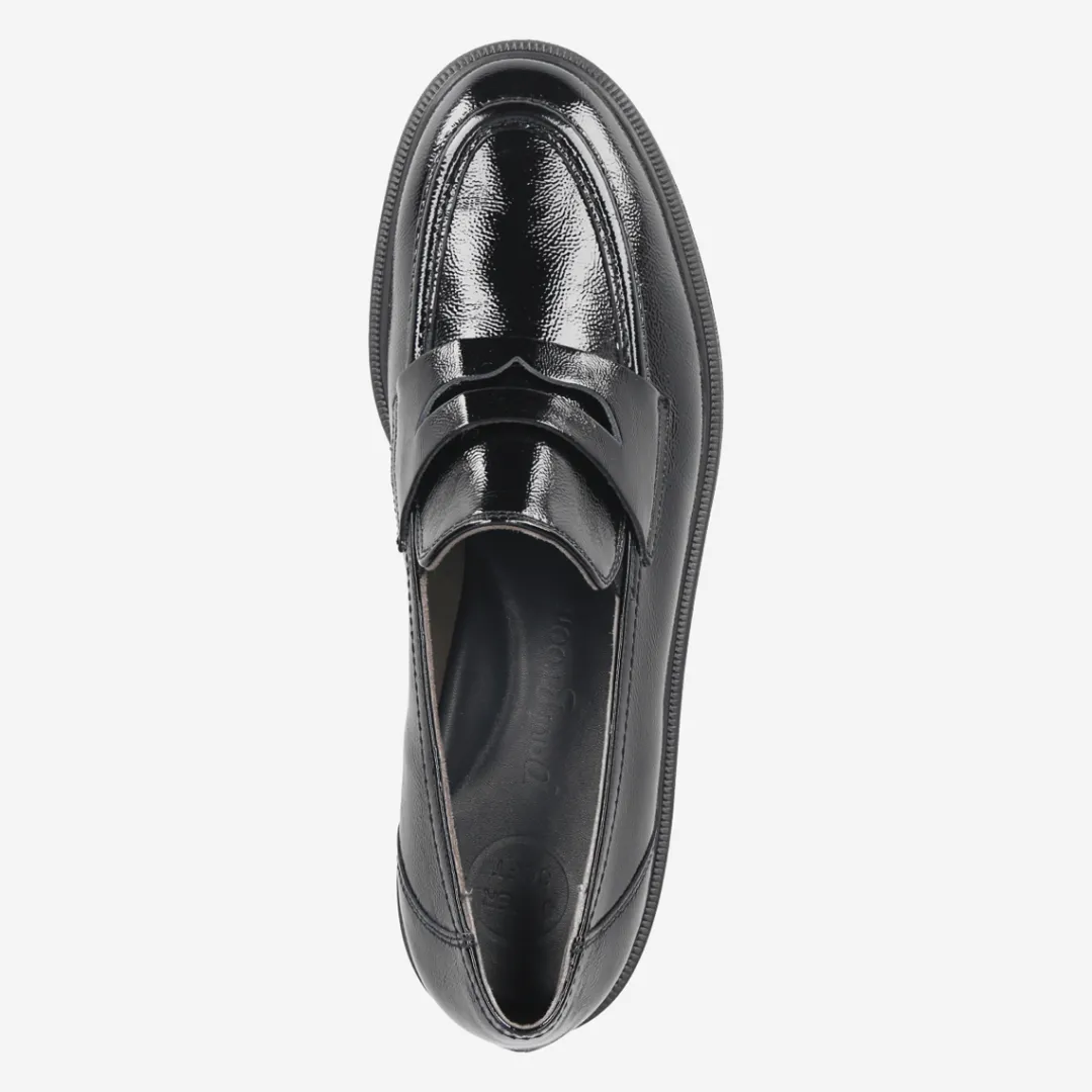 These SUPER SOFT loafers present themselves in a simple and stylish design. First-class crumpled patent leather in black scores with the super soft processing and nestles gently against the foot. Pleasantly flat and particularly light and comfortable to slip on, these loafers have what it takes to be a favorite and can be combined in a variety of ways. Show fashion trend with it! Paul Green makes shoes with great passion and mastery, which is expressed in perfection, quality, style and fit. The result: a unique, uplifting wearing experience! The Paul Green effect.