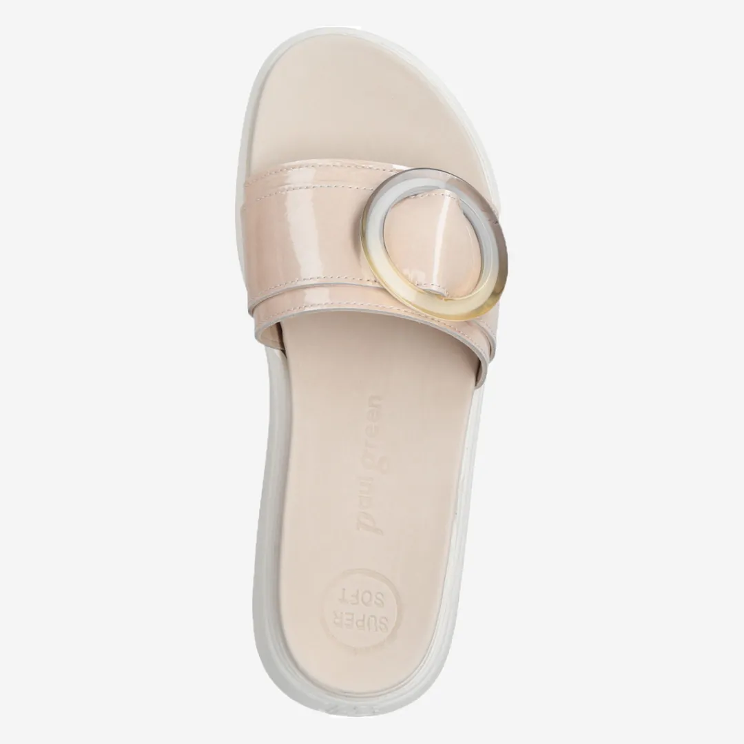 These SUPER SOFT mules by Paul Green are casual, carefree and extremely comfortable. The wide bandage made of noble patent leather in a nude tone nestles comfortably against the foot and presents itself through the noble buckle in an enchantingly feminine look. Due to the soft footbed, the pair is simply fantastic to wear. The flexible platform outsole optimizes the special wearing comfort. Become true style icons with this model! Paul Green makes shoes with great passion and mastery, which is expressed in perfection, quality, style and fit. The result: a unique, uplifting wearing experience! The Paul Green effect.