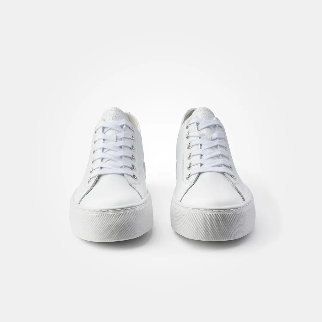 With the new platform models from Paul Green, you can really talk about a radiant appearance for once. The soft crumpled patent leather and the terry laces in combination with the PG Soft technology make the model an absolute comfort experience, both visually and haptically. The discreet decorative stitching further refines the image. Thanks to the pure white appearance, both the impressive sole and the striking leather immediately get a lot of attention and create a fantastic overall image