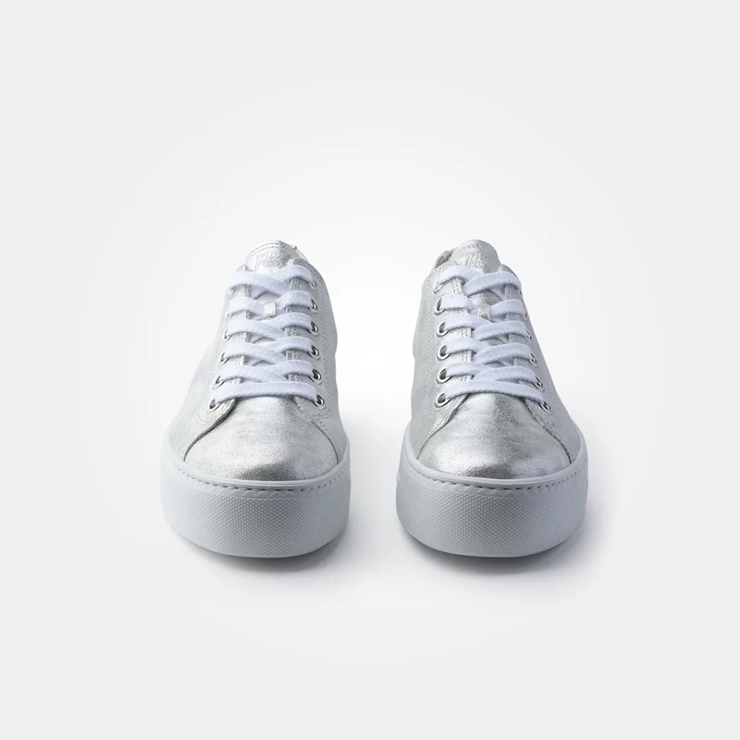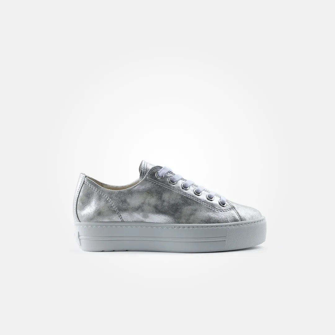 These platform Paul Green trainers are your new SUPER SOFT fashion favorites for chic casual looks. Made from high-quality metallic leather in silver, this pair boasts a minimalist design. These sneakers feature a soft leather lining with fluffy TENCELâ„¢ fibers and an extremely soft heel section for unbeatable comfort. The wide sole rounds off the overall sporty look. Give your outfit creations a fashionable finish! Paul Green makes shoes with great passion, which is expressed in perfection, quality, style and fit. The result: a unique, uplifting feel!