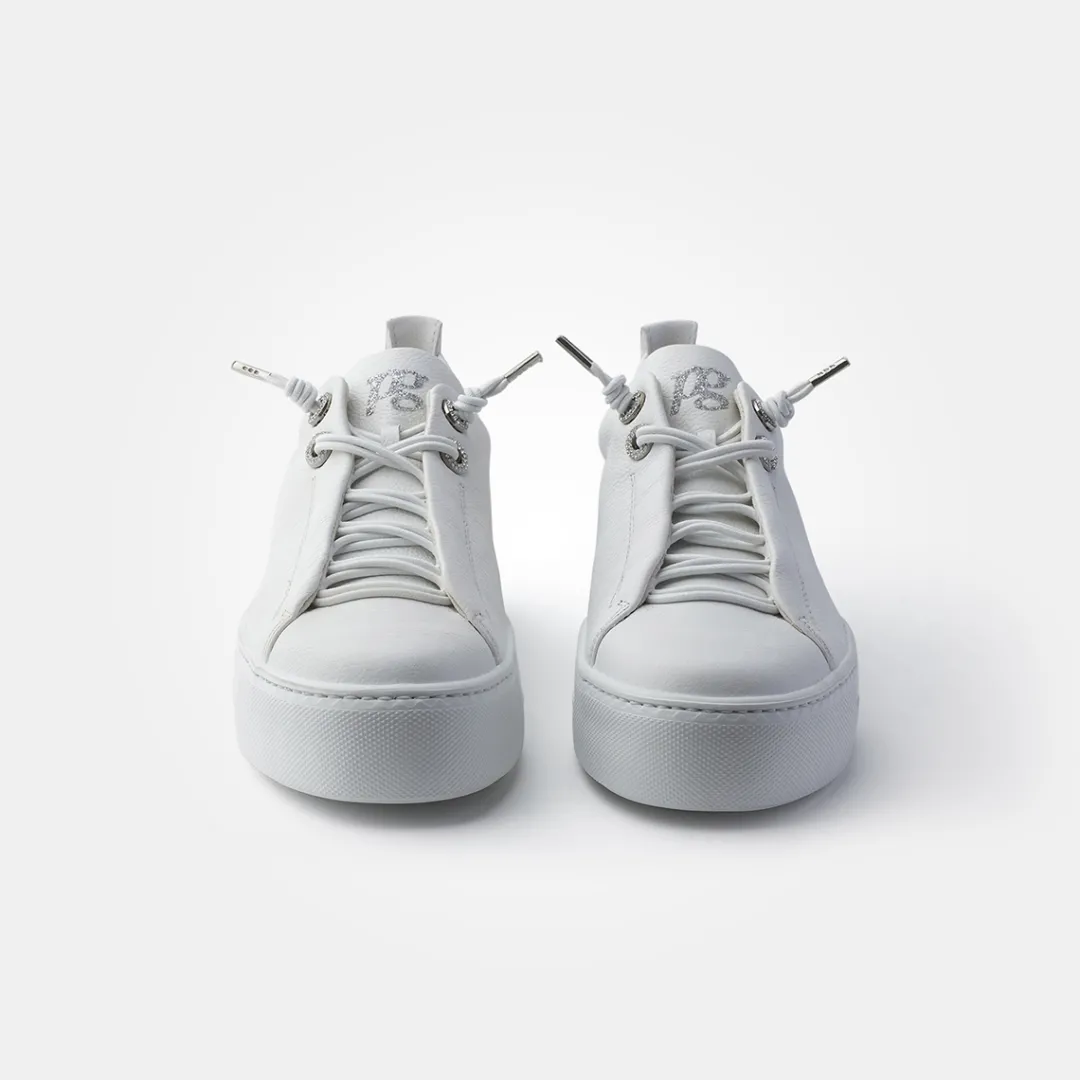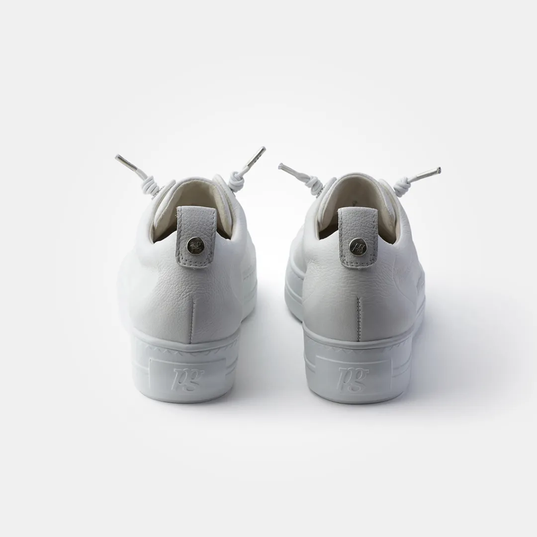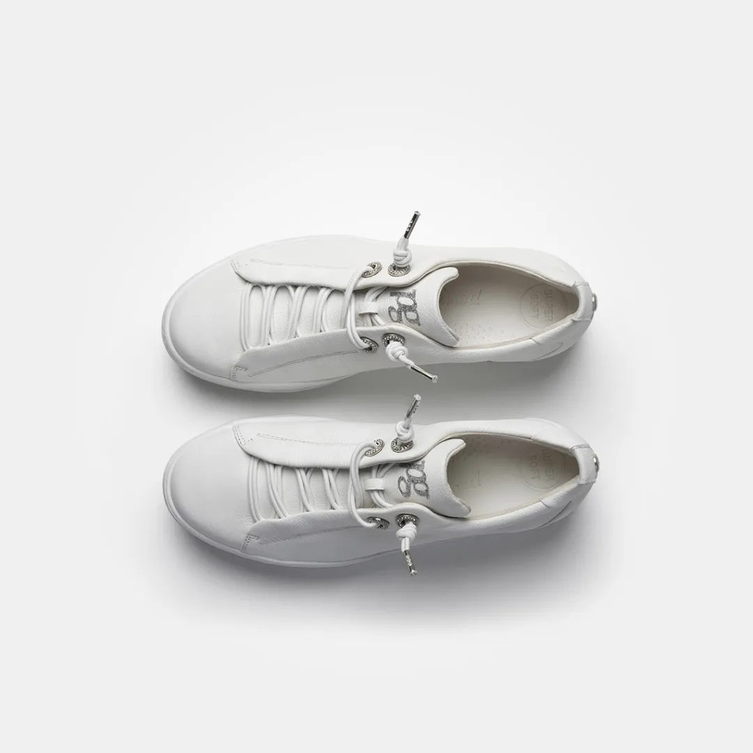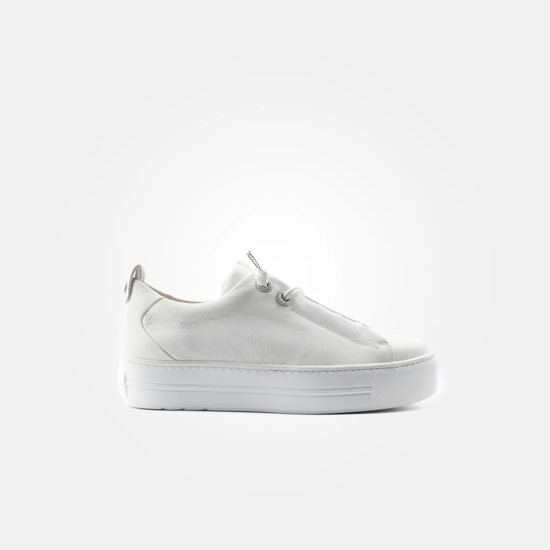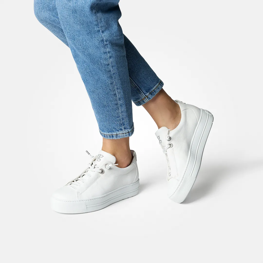 These SUPER SOFT Pauls from Paul Green are perfect for hip everyday styles. The model impresses with white smooth leather and sparkling gemstone trim on the eyelets. The elastic laces ensure a relaxed wearing feeling. Thanks to the super soft finish, the pair provides extra comfort. The wide outsole convinces with a trendy look. A perfect duo for leisure or the office! Paul Green makes shoes with great passion, which is expressed in perfection, quality, style and fit. The result: a unique, uplifting wearing experience!