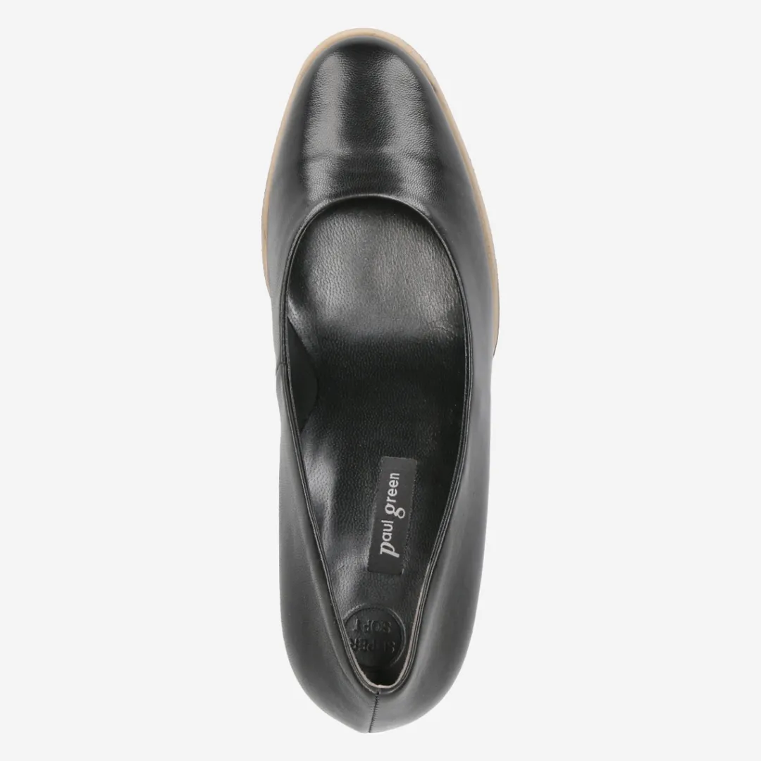 Enjoy feminine design, individual style and dreamlike comfort! This black pump by Paul Green inspires with precise workmanship, an elegant, high heel in comfort width, and its breathable leather lining. The High Soft technology ideally cushions your heel area, and the slight platform with contrasting last balances the heel to a comfortable height. Just the thing for your business look!