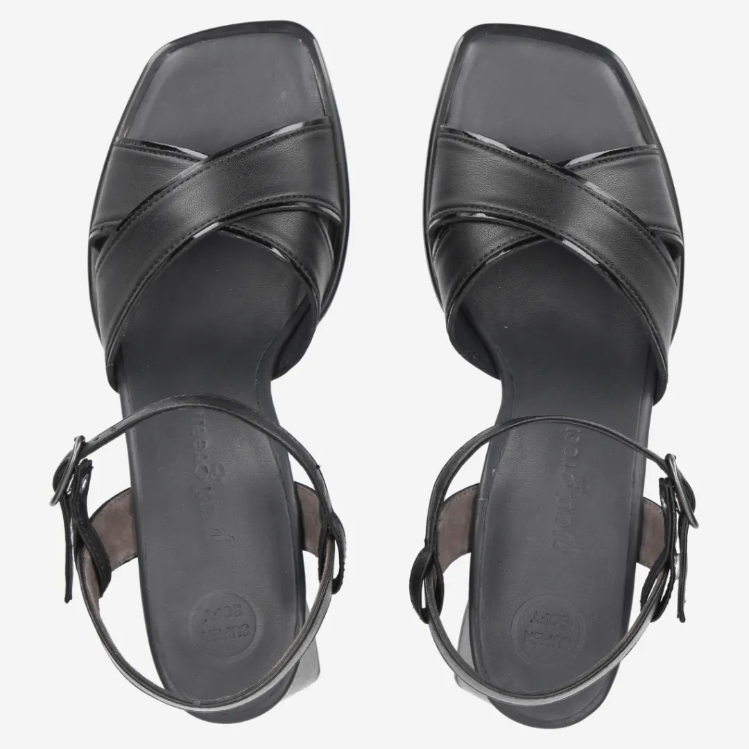 These SUPER SOFT sandals by Paul Green will delight you with their feminine touch and summery feel. Soft, vegan leather in black allows plenty of air and light to reach your skin and makes the design with its super soft finish so pleasantly comfortable. The buckle at the side allows the model to be individually adjusted and therefore adapts perfectly to the shape of your foot. The moderately high, leather-covered block heel offers a great wearing experience. Whether in the office, on vacation or in your free time – with this pair, you will always look charming wherever you go! Paul Green makes shoes with great passion, which is expressed in perfection, quality, style and fit. The result: a unique, uplifting feel!
