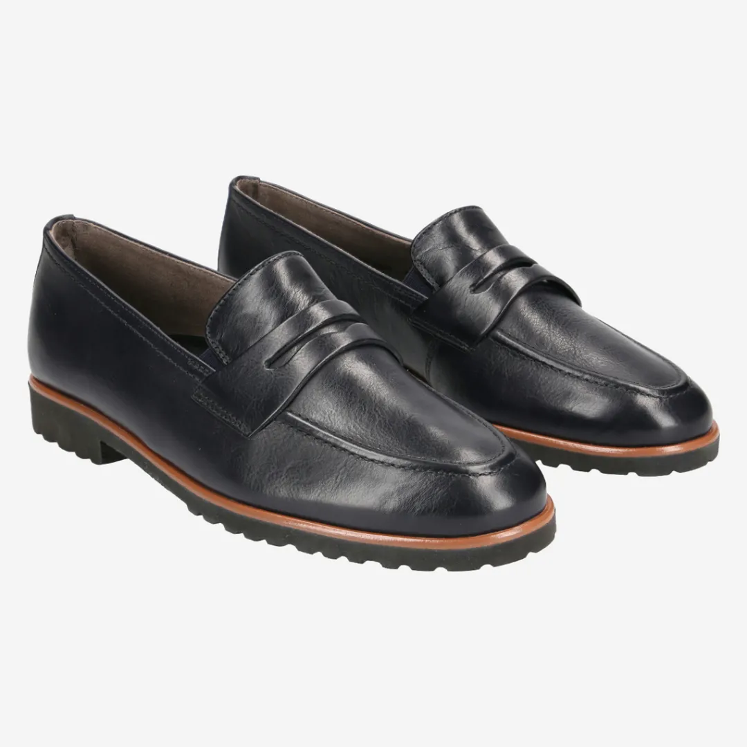 Show off a stylish touch with these SUPER SOFT slip-ons from Paul Green. The model convinces with soft smooth leather in blue and presents itself with a classic penny bridge and pointed toe cap. In addition, the model provides an exceedingly super soft heel and a soft comfortable outsole for unbeatable wearing comfort. A shoe for all days! Paul Green shoes have a DNA of elegance and sportiness. This DNA is in every single shoe and in the entire range.