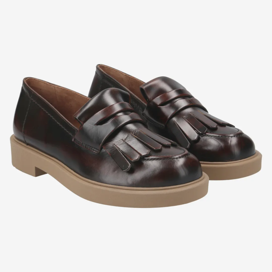 Slipper meets fringes! These SUPER SOFT loafers from Paul Green present themselves in an expressive design. The beautiful smooth leather in brown is contrasted by chic fringes and thus follows the trend of the season. Due to the super soft processing, the model is extremely comfortable to wear and uncomplicated in handling. The flexible outsole underlines the trendy look and ensures a comfortable appearance. This pair is a real favorite! Paul Green makes shoes with great passion and mastery, which is expressed in perfection, quality, style and fit. The result: a unique, uplifting wearing experience! The Paul Green effect.