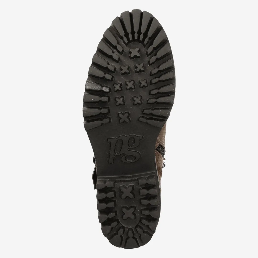 These wonderful biker boots made of brown suede from Paul Green inspire not only by the two metal buckles, but also by the stud applications that decorate the front of the shoe. The warm, autumnal hue invites you to take an extended walk in the woods and the pronounced tread sole gives the shoe a secure grip even in wet weather. The zipper makes it easy to put on and take off.